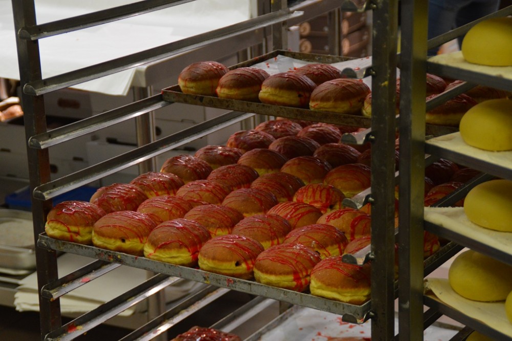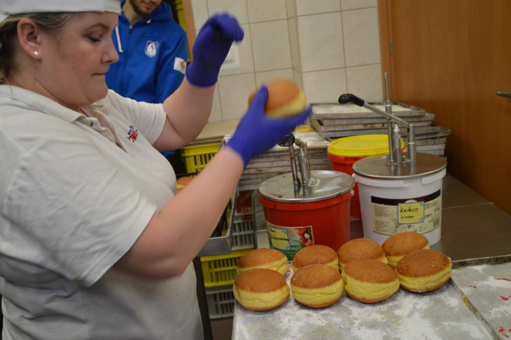 Pączki idą dziś jak świeże bułeczki, dlatego trzeba je ciągle dopiekać, dopiekać, dopiekać. Piekarze w suwalskich pączkarniach dwoją się i troją, często na oczach cierpliwie czekających w kolejkach smakoszy.