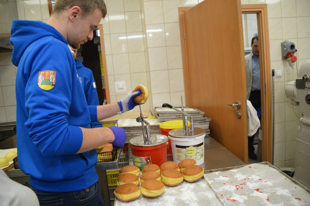 PÄ…czkarnia „SÅ‚odki ZakÄ…tek” firmy Cymes poprosiÅ‚a o pomoc siatkarzy pierwszoligowego Åšlepska SuwaÅ‚ki . Sportowcy na pewno lepiej radzÄ… z piÅ‚kÄ…, ale po wysÅ‚uchaniu i obejrzeniu szybkiego kursu, bez problemu nadziewali Å›wieżutkie wypieki.