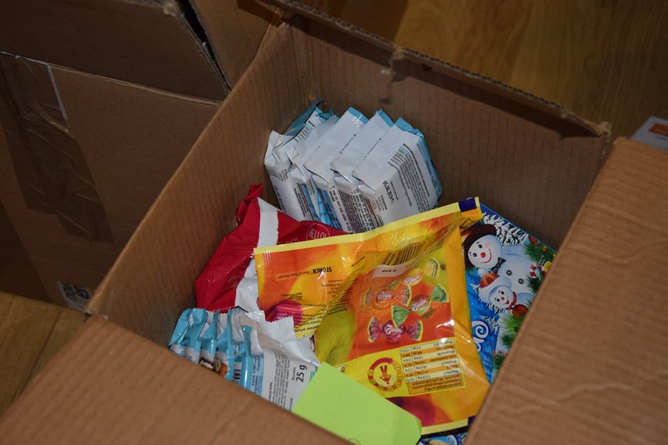 Zabawki, słodycze i książki były zbierane podczas tak zwanego „słodkiego meczu”.
