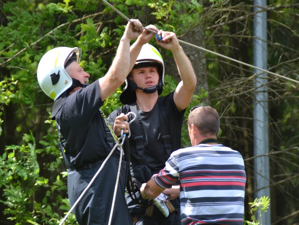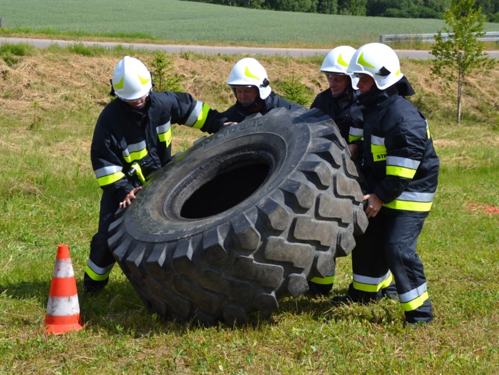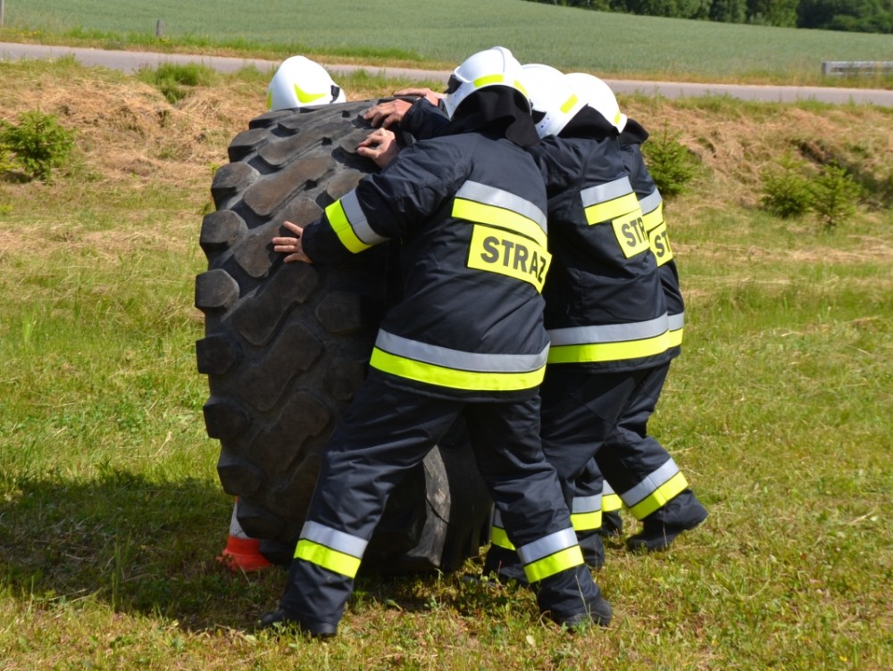 Wyjęty ze studni manekin ląduje na noszach. Strażacy jeszcze jednak nie odjeżdżają. Odbywa się krótki kurs z wiązania i mocowania lin. Druga stacja to test sprawność. Na pozór najłatwiejsze z zadań, przynosi wiele trudności. Rzucanie do celu, turlanie opony i noszenie wody wiadrem. Tego druhowie się nie spodziewali.