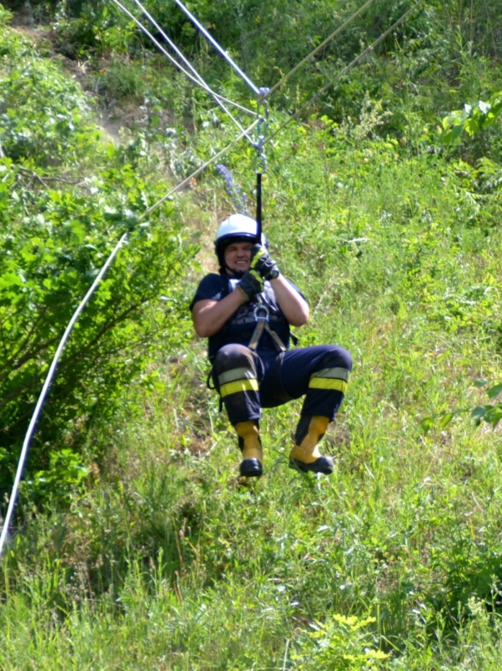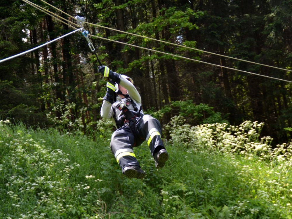 Po zakończonym zadaniu strażacy wspinają się wzdłuż brzegu jeziora. Nie wiedzą, że to nie koniec podróży w górę. Kolejny etap to wyzwanie związane z wysokością. Kilkaset metrów dalej wdrapać się muszą na szczyt Jesionowej Góry. Schodzić nie będą już musieli. Zjadą na linach. Ten punkt nie jest obowiązkowy, ale tylko nieliczni odmawiają.