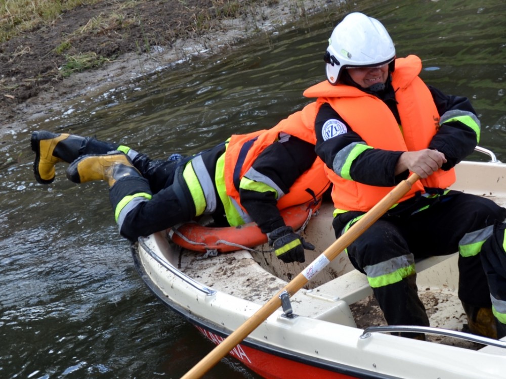 Rozgrzewka się przydała. Kolejny punkt to jezioro Szelment i tonący mężczyzna. Tu będzie trzeba wiosłować. Strażacy naradzają się najpierw, który potrafi to robić i rzucają się do łódki. Po wszystkim większość z grup usłyszy takie samo pytanie.