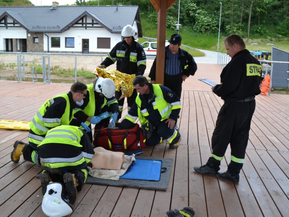 Niby drobnostka, a strażacy reagują z dużą dawką emocji. Dyskusja nie trwa zbyt długo. Uratowany potrzebuje pomocy. Strażacy rozpoczynają masaż serca i sztuczne oddychanie. Gromadzą się wokół leżącego na pomoście manekina. Każdy z elementów będzie potem szczegółowo omówiony.