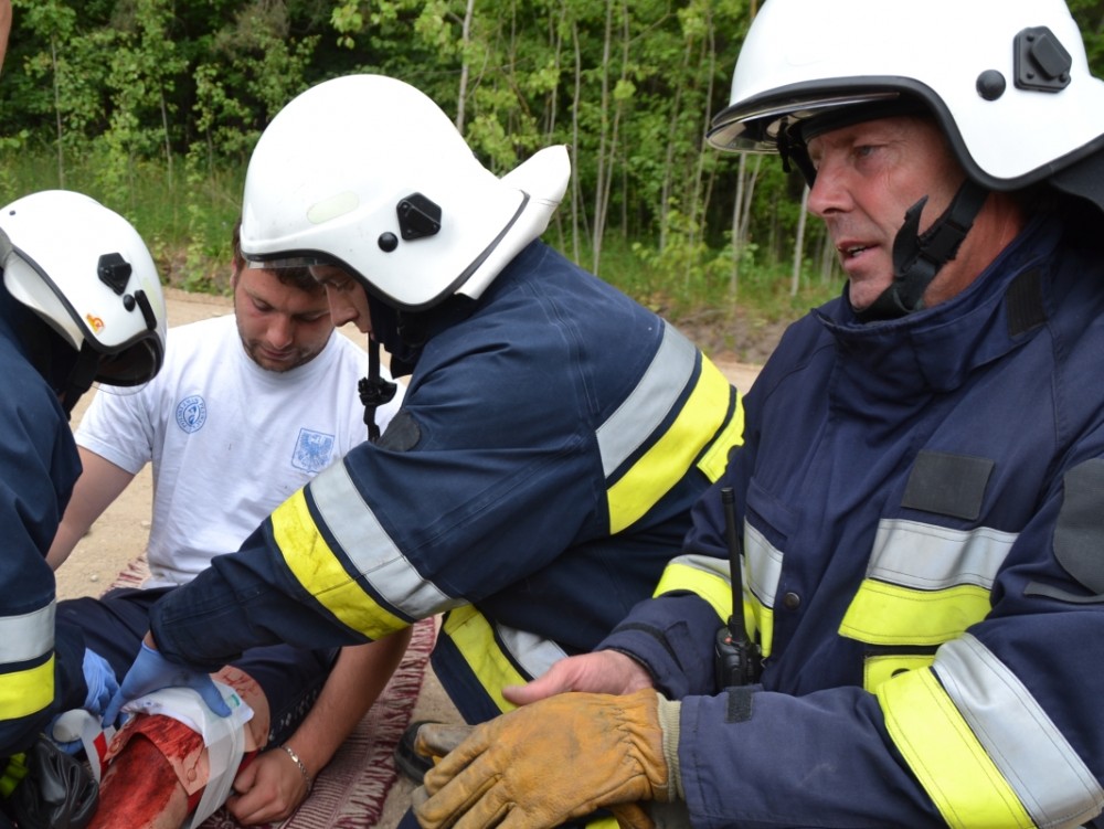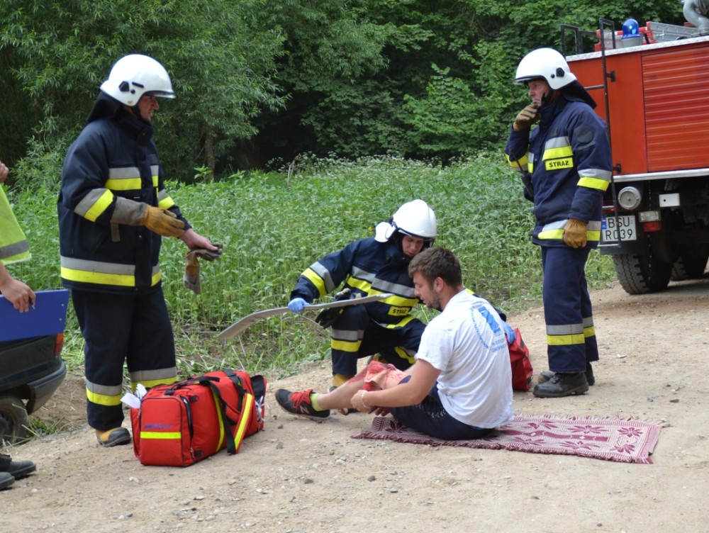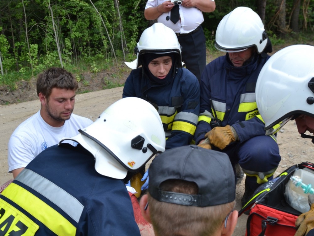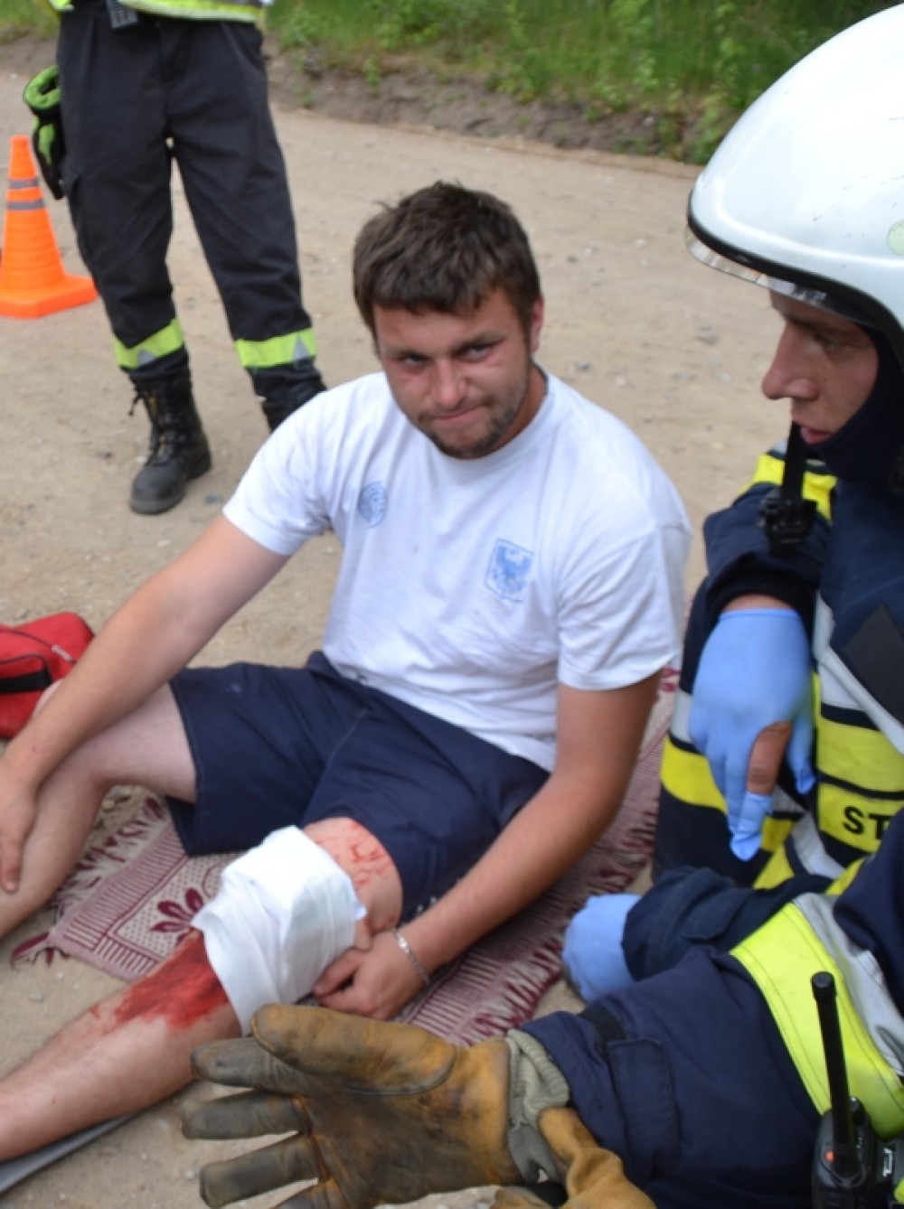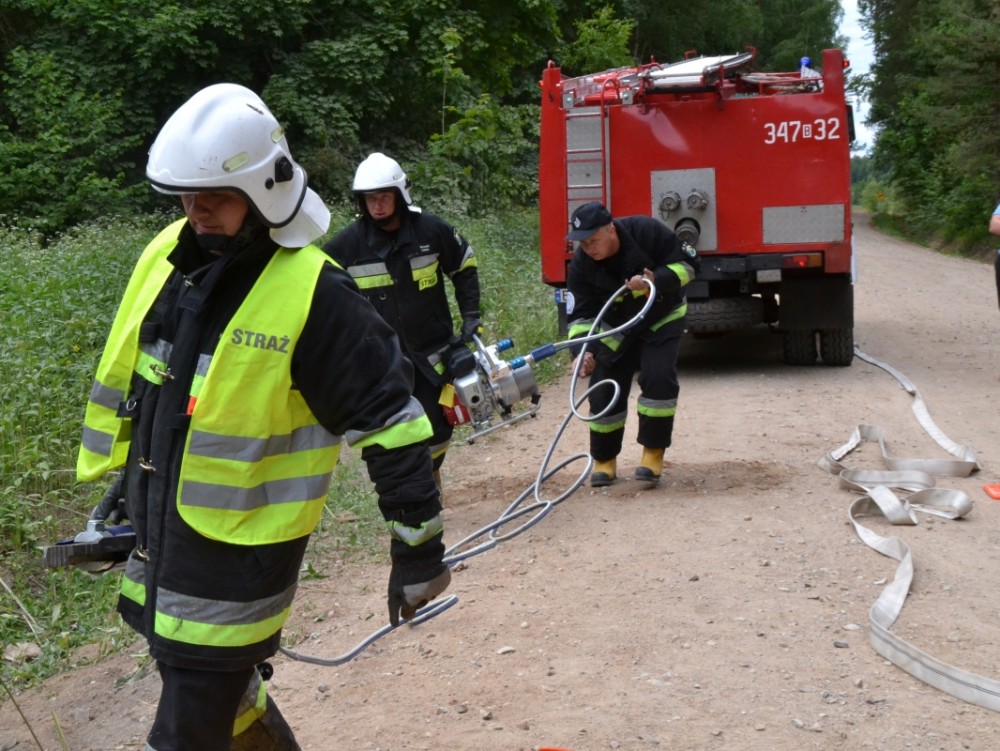 Umiejętności cięcia nożycami testowane są na prętach leżących na poboczu. Auta nikt nie rozcina. Strażacy muszą się bowiem pochwalić tym jak potrafią wydostać poszkodowanego z ciasnej osobówki. Nie jest łatwo. Pozorujący poszkodowanego skarży się, że jedna z jednostek podrapała mu plecy.