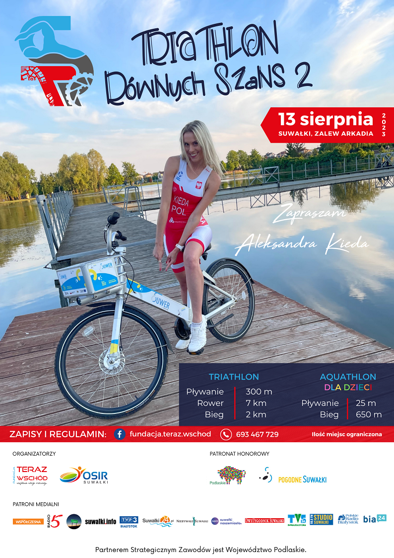 Wyjątkowe wydarzenie dla uczestników i kibiców po raz drugi przygotowała Fundacja Teraz Wschód oraz Ośrodek Sportu i Rekreacji. W niedzielę, 13 sierpnia o godz. 10 nad Zalewem Arkadia w Suwałkach rozpocznie się Triathlon Równych Szans.