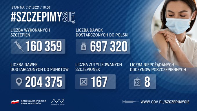 W Polsce wykonano do tej pory 160 359 szczepień przeciw COVID-19. Zainteresowanie szczepionkami jest różne. Od Nowego Roku zmniejszyła się liczba tak zwanych „łóżek covidowych”. Szpitale starają się uruchamiać zabiegi planowe.