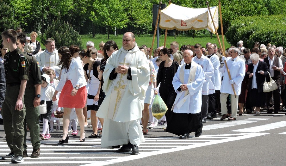 - Chrystus, który wstÄ…piÅ‚ do nieba i w nim zostaÅ‚, dziÅ› na nowo otwiera niebo przed nami żeby przybliżyć tajemnicÄ™ Eucharystii. Dlatego kiedy wyjdziemy na ulice miasta w tej procesji, nie zwracajmy uwagi na sprawy przyziemne. W tym momencie odnówmy w sobie miÅ‚ość do sakramentu Eucharystii, do tego, co jest istotÄ… miÅ‚oÅ›ci tego, który z nieba zstÄ™puje, po to, żebyÅ›my już tu, na ziemi, mieli dla siebie kawaÅ‚ek nieba – w homilii mówiÅ‚ ks. Marek Borysiak, proboszcz parafii pw. MBM.