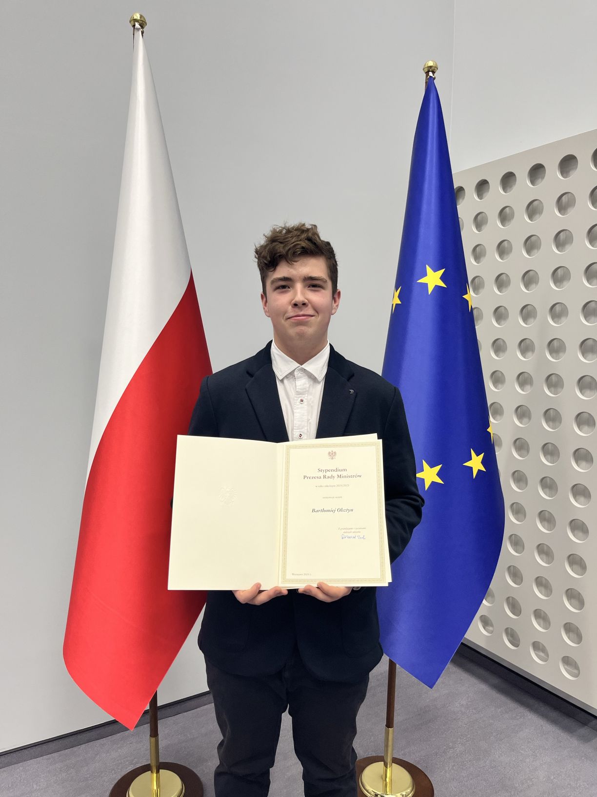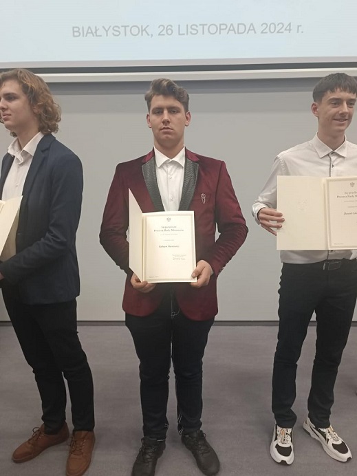 Stypendium otrzymaÅ‚ również uczeÅ„ piÄ…tej klasy technikum w Zespole SzkóÅ‚ w Dowspudzie Fabian Masiewicz.