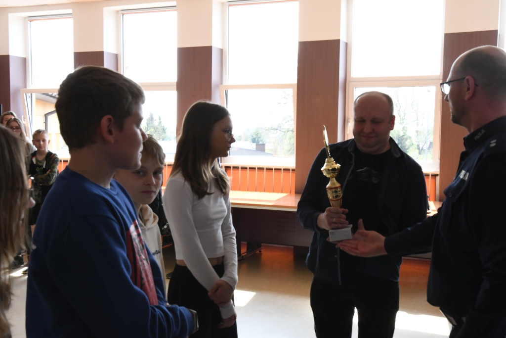 Puchary, a także nagrody rzeczowe uczniowie odbierali z rąk zastępcy prezydenta Miasta Suwałk Romana Rynkowskiego, dyrektora WORD w Suwałkach Grzegorza Wilczyńskiego oraz przedstawicieli Komendanta Miejskiego Policji w Suwałkach.