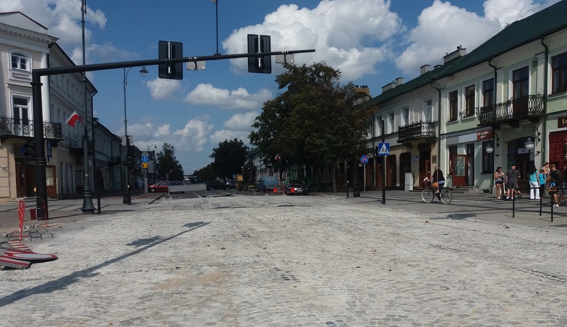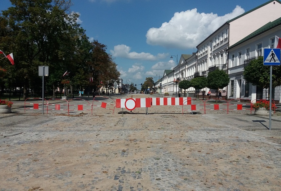 Sama ulica wzdÅ‚uż Parku Konstytucji 3 Maja, której nawierzchnia z kostki granitowej byÅ‚a przekÅ‚adana i scalana specjalnym betonem pozostanie jeszcze nieprzejezdna do 22 wrzeÅ›nia. Objazd od PóÅ‚nocy odbywać siÄ™ bÄ™dzie wÅ‚aÅ›nie Placem PiÅ‚sudskiego, ulicami Hamerszmita i Mickiewicza.