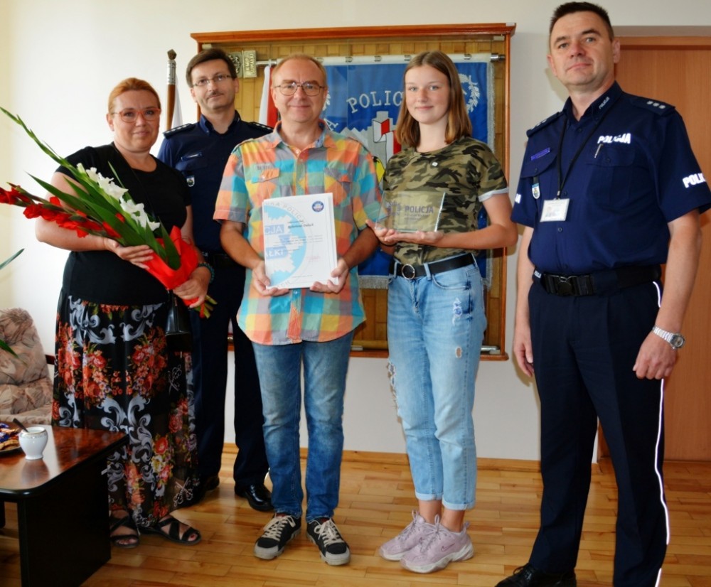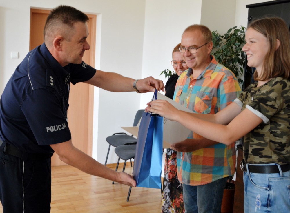 Pierwszy Zastępca Komendanta Miejskiego Policji w Suwałkach złożył w miniony piątek podziękowania za wzorową postawę obywatelską godną naśladowania oraz wręczył list gratulacyjny i pamiątkową statuetkę rodzinie z Łodzi, która wspólnie przyczyniła się do uratowania siedmiolatki, dryfującej po jeziorze Staw w miejscowości Płociczno.
