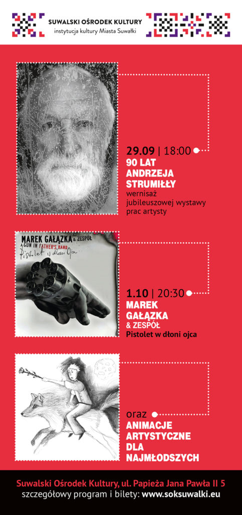 -koncerty: Organka (piątek, 29.09), 10 lat Suwalskiej Orkiestry Kameralnej z gościem specjalnym zespołem Klezmafour (sobota, 30.09), Marek Gałązka z zespołem (niedziela, 1.10)