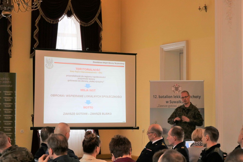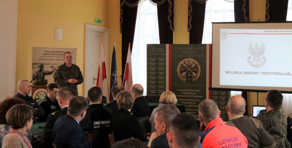 - Razem z żołnierzami brygady w warsztatach uczestniczą przedstawiciele samorządów i podległych im służb oraz instytucji odpowiedzialnych za zarządzanie kryzysowe na terenie Suwałk oraz powiatów suwalskiego, augustowskiego i sejneńskiego. We wtorek eksperci zapoznali się m.in. z elementami, które 1.PBOT (w tym 12. batalion lekkiej piechoty z Suwałk) utrzymuje w systemie zarządzania kryzysowego MON - informuje por. Łukasz Wilczewski, oficer prasowy 1. Podlaskiej Brygady Obrony Terytorialnej.