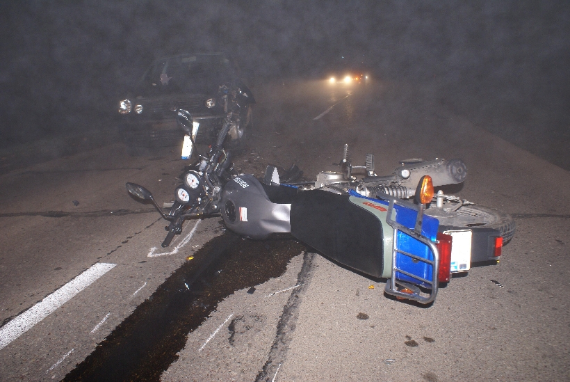 Na ulicy Bakałarzewskiej w Suwałkach 45-letni, nietrzeźwy, jak wykazało wstępne badanie, motorowerzysta zjechał na przeciwległy pas ruchu i zderzył się z nadjeżdżającym z przeciwka volkswagenem.
