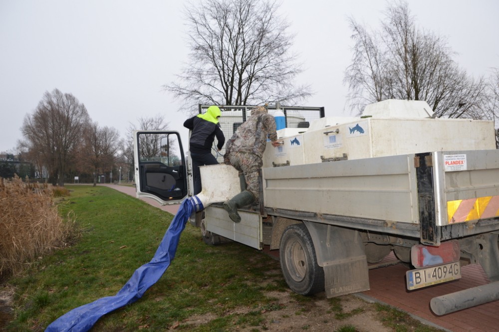 Około osiemdziesięciu kilogramów ryb trafiło do zalewu Arkadia w Suwałkach. To głównie sandacze i szczupaki. O zwiększeniu ich populacji zdecydowali przyrodnicy.