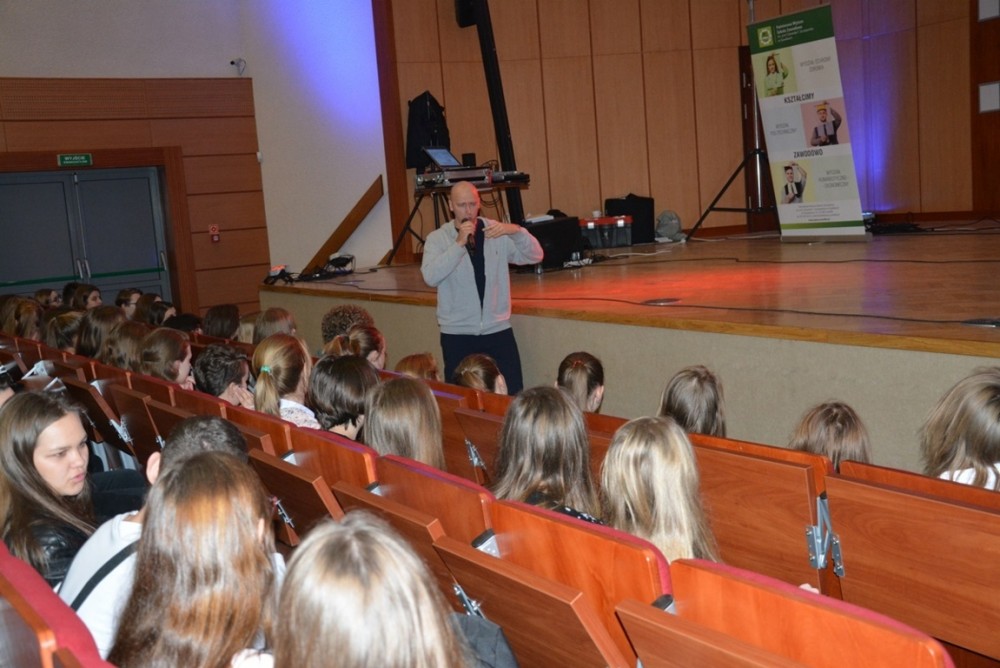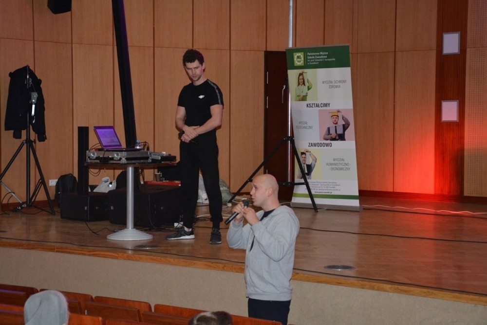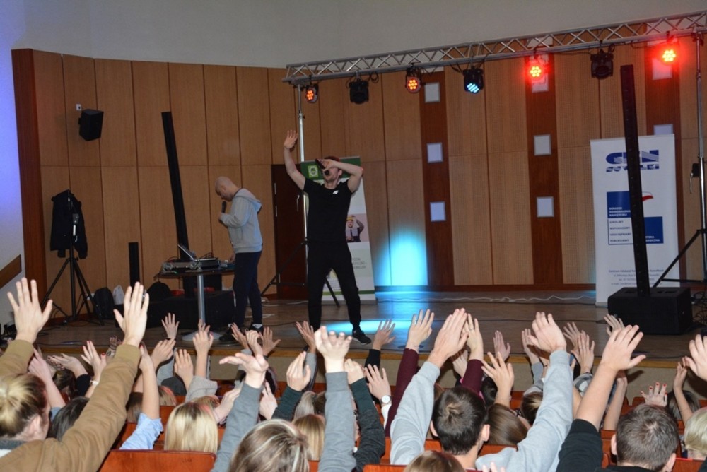 - Z zaproszenia PWSZ oraz Centrum Edukacji Nauczycieli i Suwalskiego Ośrodka Doskonalenia Nauczycieli (współorganizatorów) skorzystało ponad 700 uczniów z niemal wszystkich placówek. Artyści, a jednocześnie – swoiści terapeuci, mówili o swoich doświadczeniach z używkami, uzależnieniami oraz przejściem na drogę wolności, akceptacji i miłości. Wydarzenie było nietypowym koncertem hip-hopowym połączonym z życiowymi refleksjami i rozmowami - informuje Dawid Harasim, rzecznik prasowy Państwowej Wyższej Szkoły Zawodowej w Suwałkach.