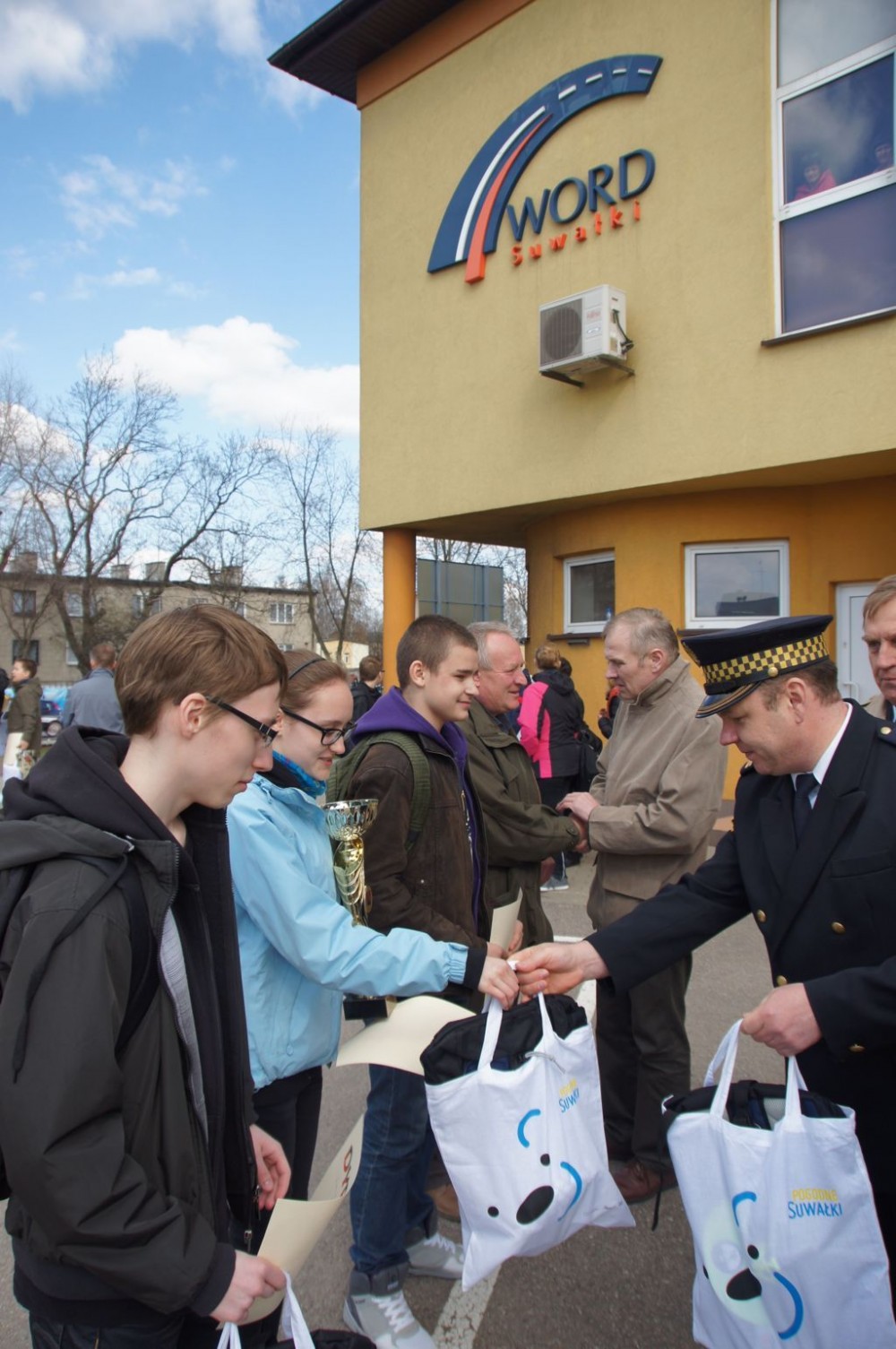 Drużyny, które zajęły pierwsze trzy miejsca, otrzymaÅ‚y nagrody rzeczowe oraz puchary ufundowane przez Prezydenta SuwaÅ‚k, Komendanta Miejskiego Policji w SuwaÅ‚kach, Dyrektora WORD w SuwaÅ‚kach oraz PZMot.