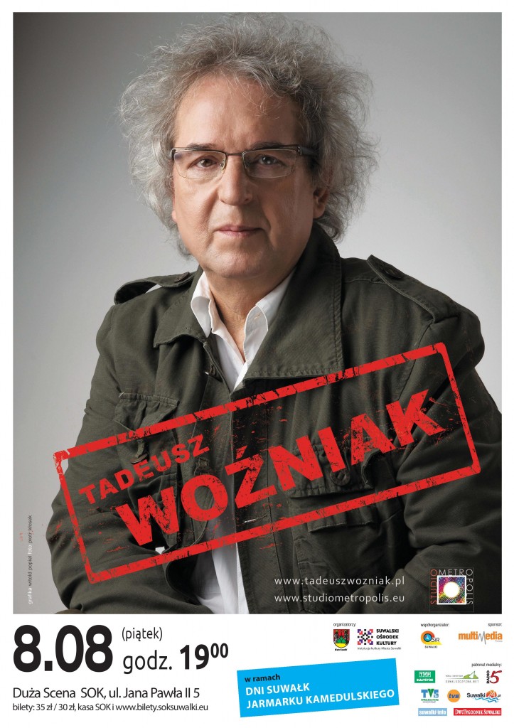 W piątek na dużej scenie Suwalskiego Ośrodka Kultury wystąpi wykonawca kultowego „Zegarmistrza światła…” Tadeusz Woźniak. W sobotę świętowanie przeniesie się w plener. W Parku Konstytucji 3 Maja