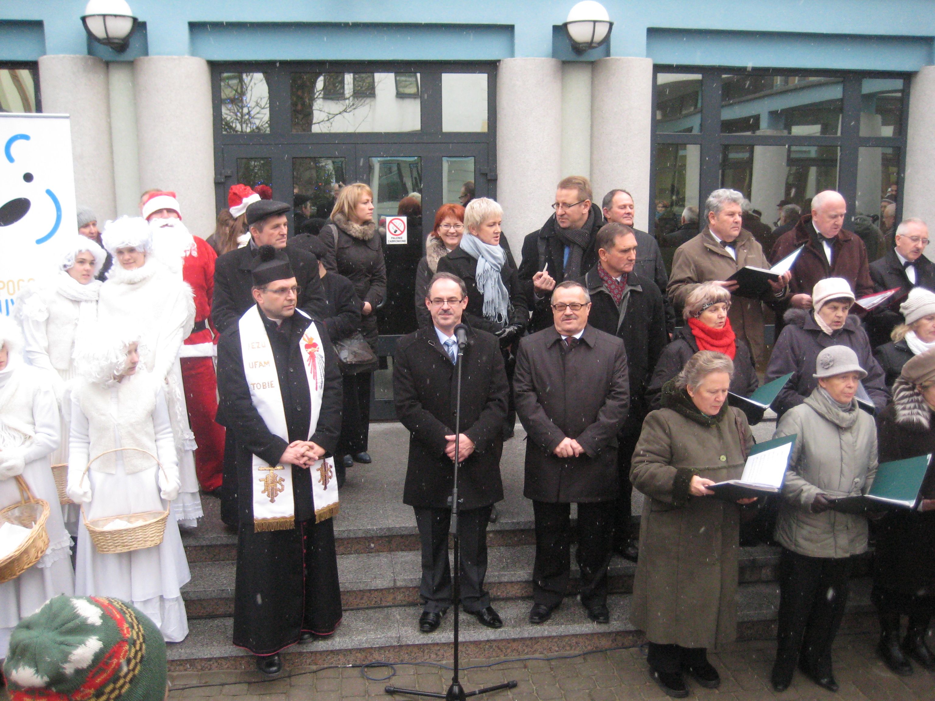 Na wspólne śpiewanie kolęd, dzielenie się opłatkiem i składanie świątecznych życzeń zapraszają prezydent Suwałk Czesław Renkiewicz i Przewodniczący Rady Miejskiej Andrzej Chuchnowski.