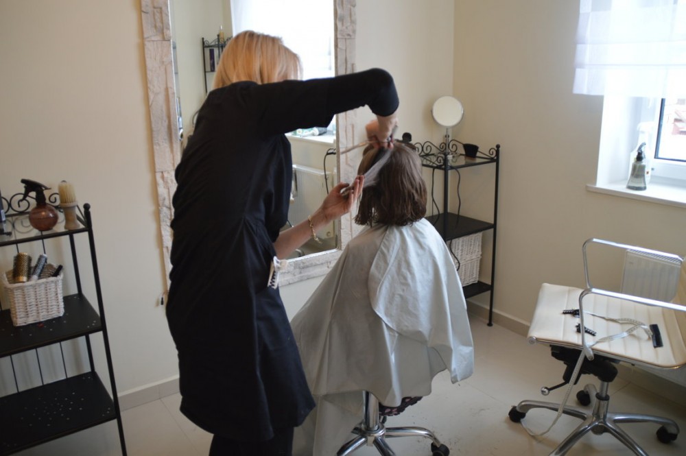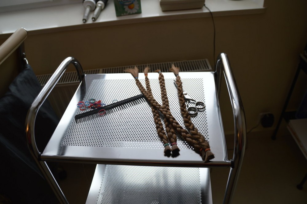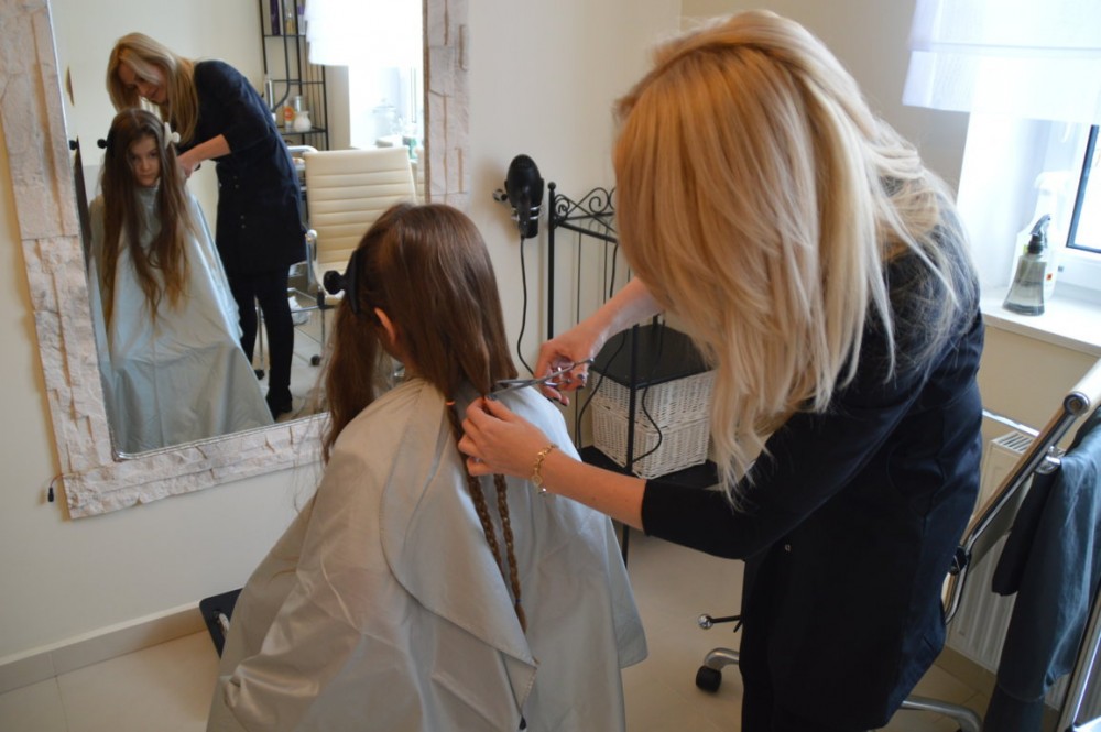 Zuzia zasiadÅ‚a wiÄ™c we fryzjerskim fotelu. Najpierw wÅ‚osy trzeba byÅ‚o zmierzyć, ponieważ fundacja przyjmuje kosmyki nie krótsze niż 25 cm. Potem wÅ‚osy Zuzi zostaÅ‚y zaplecione w warkoczyki, zwiÄ…zane gumkami i Å›ciÄ™te. TrafiÅ‚y do koperty i pojechaÅ‚y do siedziby Fundacji We Girls.