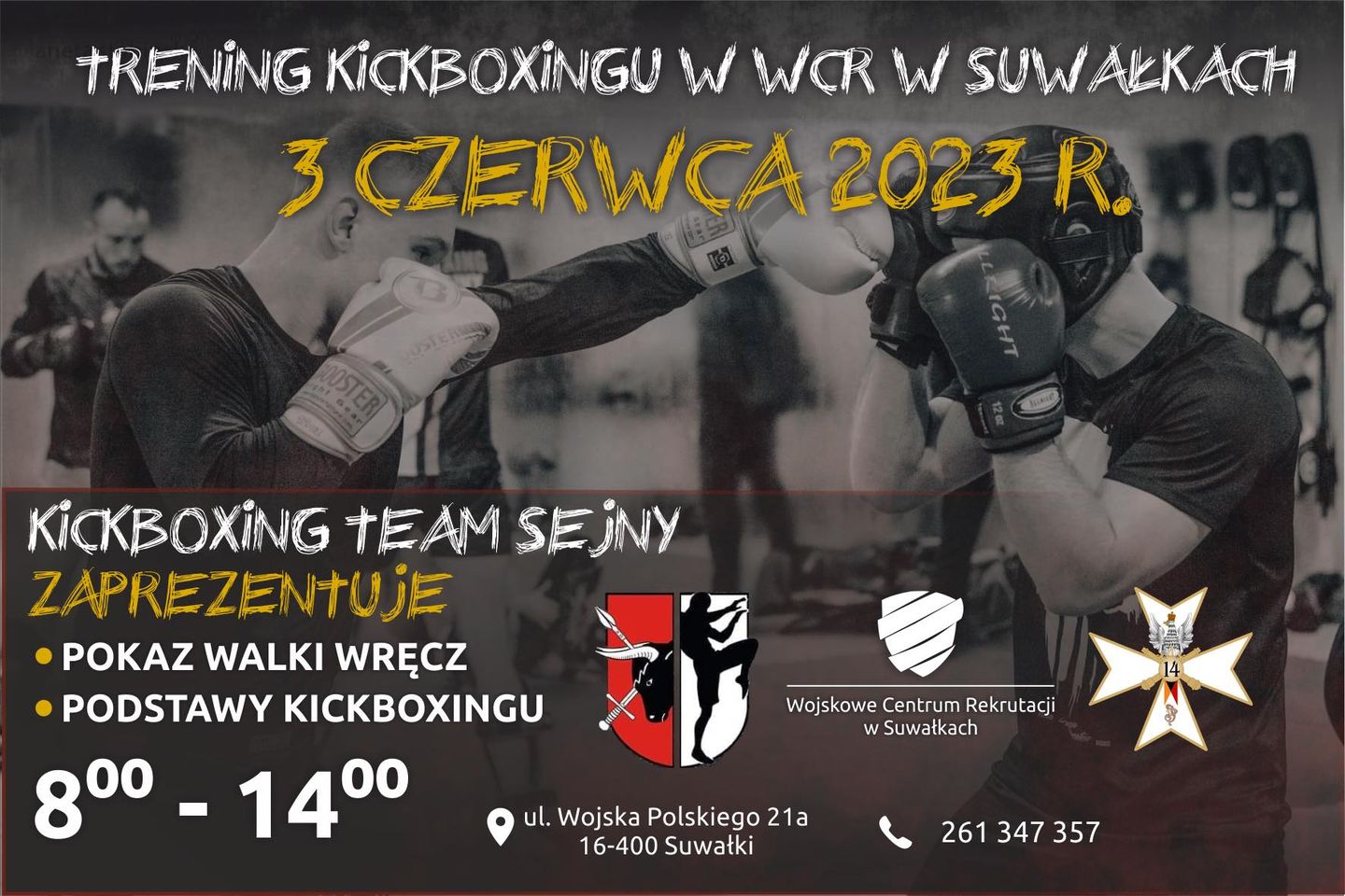 Każda osoba, która odwiedzi Wojskowe Centrum Rekrutacji w SuwaÅ‚kach (ul. Wojska Polskiego 21a 16-400 SuwaÅ‚ki) w dniu 3 czerwca 2023 r. od godziny 08:00 do 14:00, bÄ™dzie miaÅ‚a możliwość uczestnictwa w bezpÅ‚atnym treningu kicboxingu organizowanym przez utalentowanych zawodników, wÅ›ród których znajduje siÄ™ Mistrz Polski LOW KICK PRO AM.
