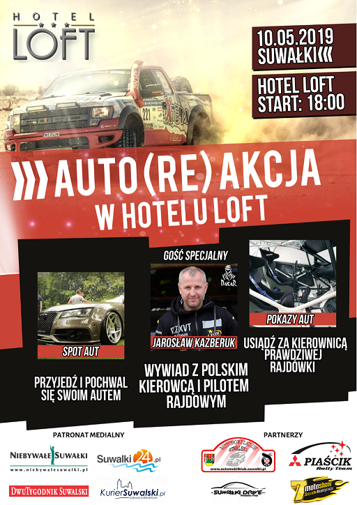 - W trakcie imprezy zaprezentowane zostanÄ… profesjonalnie przygotowane do rajdów auta, które bÄ™dzie można dokÅ‚adnie obejrzeć, usiąść za ich kierownicÄ… i poczuć siÄ™ jak kierowca rajdowy. Wydarzenie bÄ™dzie połączone ze zlotem motoryzacyjnym. Zapraszamy wszystkich, by przyjechać i pochwalić siÄ™ swoim autem czy też motocyklem - zachÄ™ca Emil Zagórski z Hotelu LOFT 1898 w SuwaÅ‚kach.