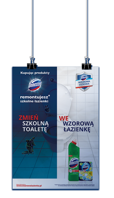 Akcja „Wzorowa Łazienka” marki Domestos skierowana jest do publicznych szkół podstawowych. Jest to program edukacyjny, który ma wpłynąć na zmianę warunków sanitarnych w polskich szkołach poprzez kształtowanie właściwych nawyków higienicznych wśród uczniów oraz zapewnienie zwycięskiej szkole przyjaznej, funkcjonalnej i czystej łazienki. Szczegółowe informacje na temat programu: www.wzorowalazienka.pl