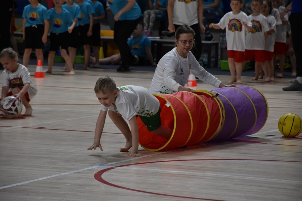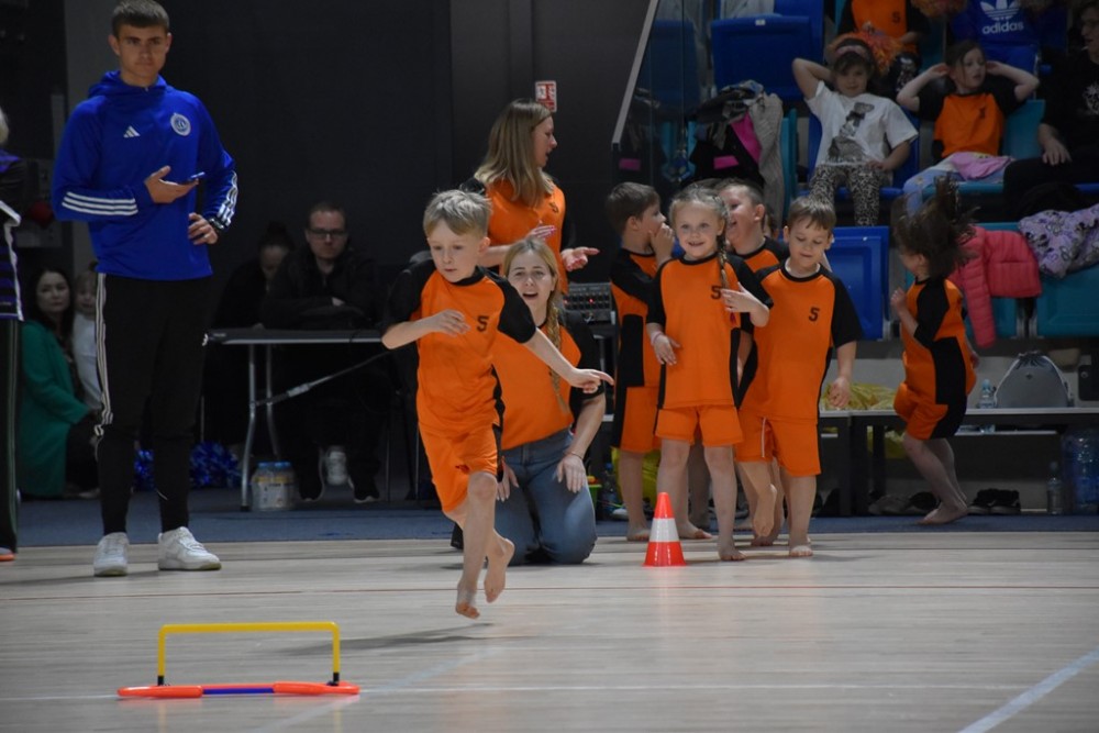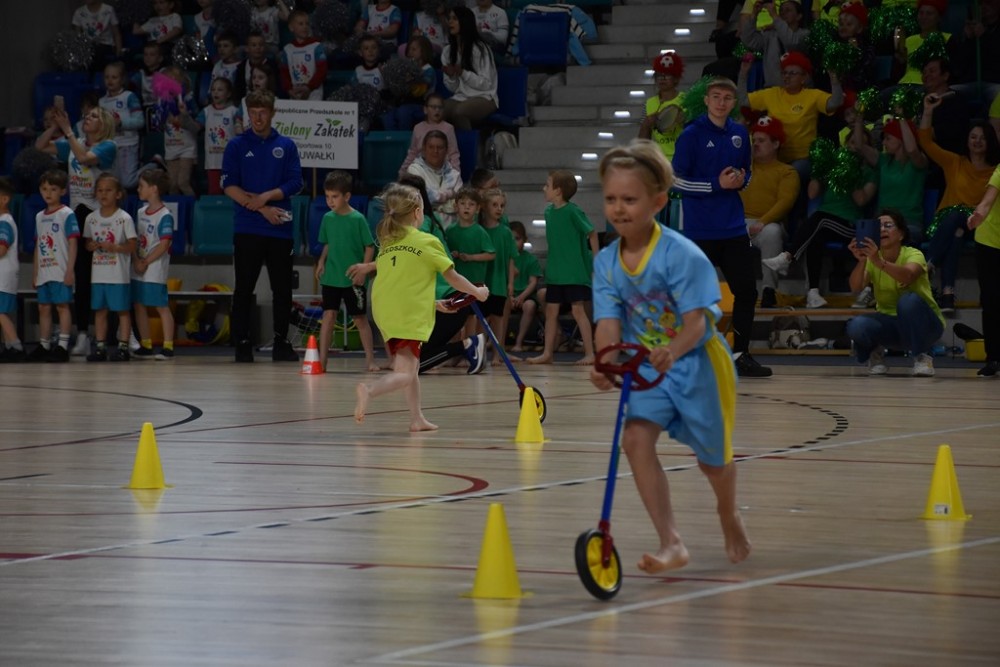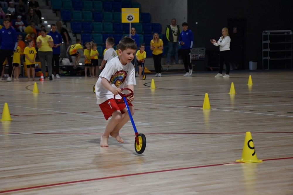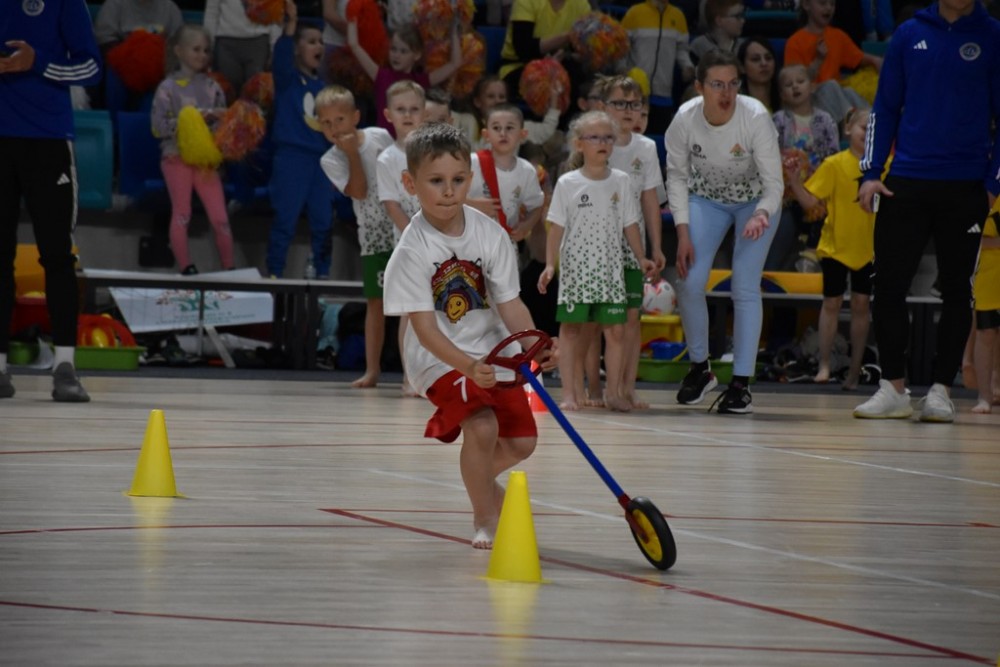 Przedszkolne drużyny zaczęły od symulacji wyÅ›cigów samochodowych i zabawa, nad której przebiegiem jako sÄ™dzia gÅ‚ówny czuwaÅ‚ trener siatkarzy Åšlepska Malowu Dominik Kwapisiewicz, rozkrÄ™cila siÄ™ w najlepsze.