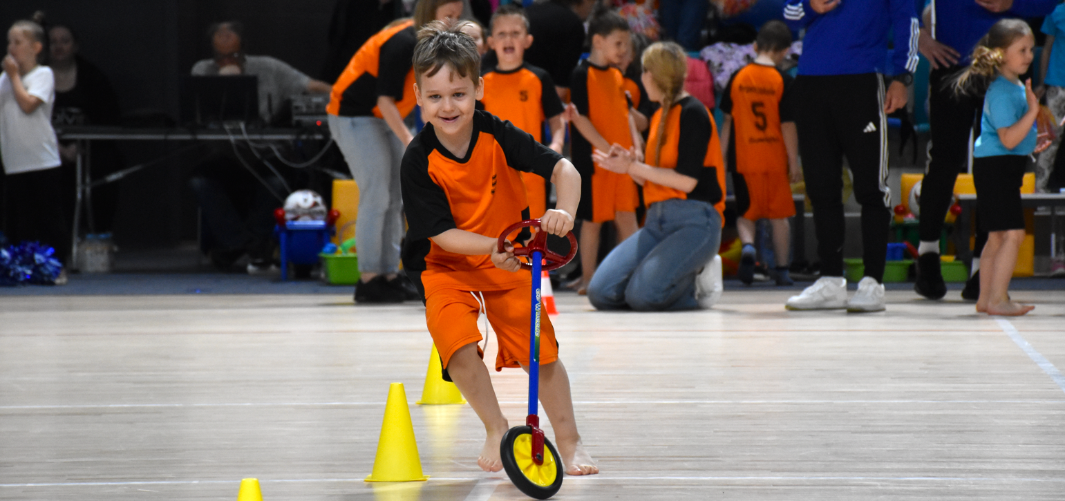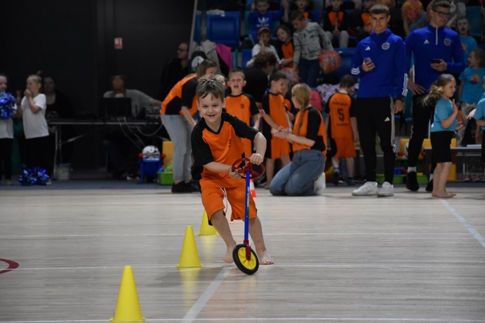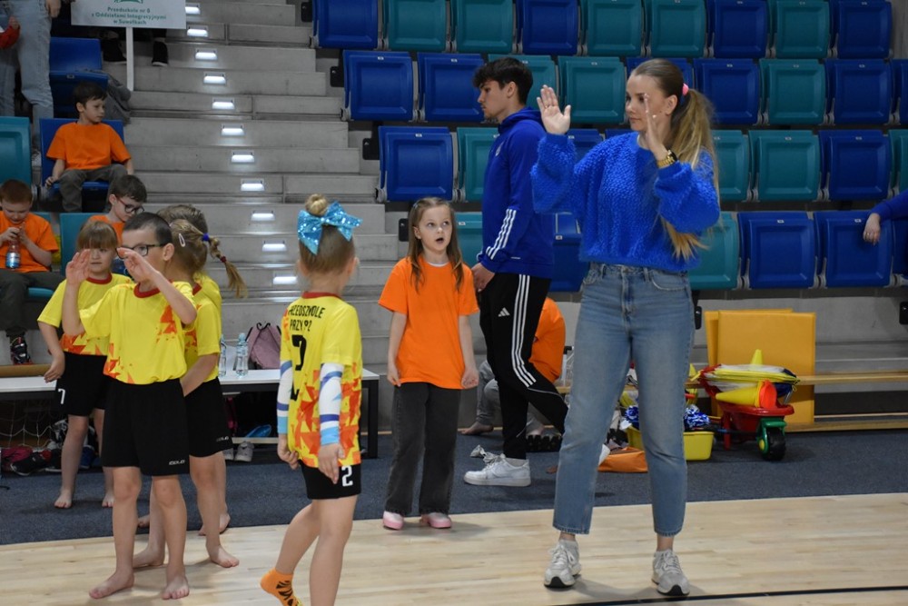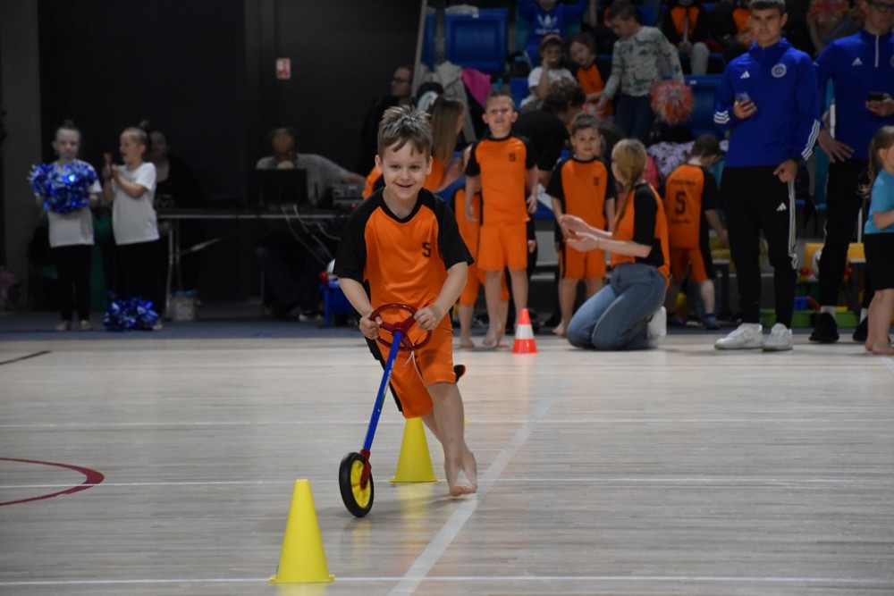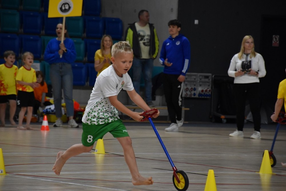 Przedszkolne drużyny zaczęły od symulacji wyÅ›cigów samochodowych i zabawa, nad której przebiegiem jako sÄ™dzia gÅ‚ówny czuwaÅ‚ trener siatkarzy Åšlepska Malowu Dominik Kwapisiewicz, rozkrÄ™cila siÄ™ w najlepsze.