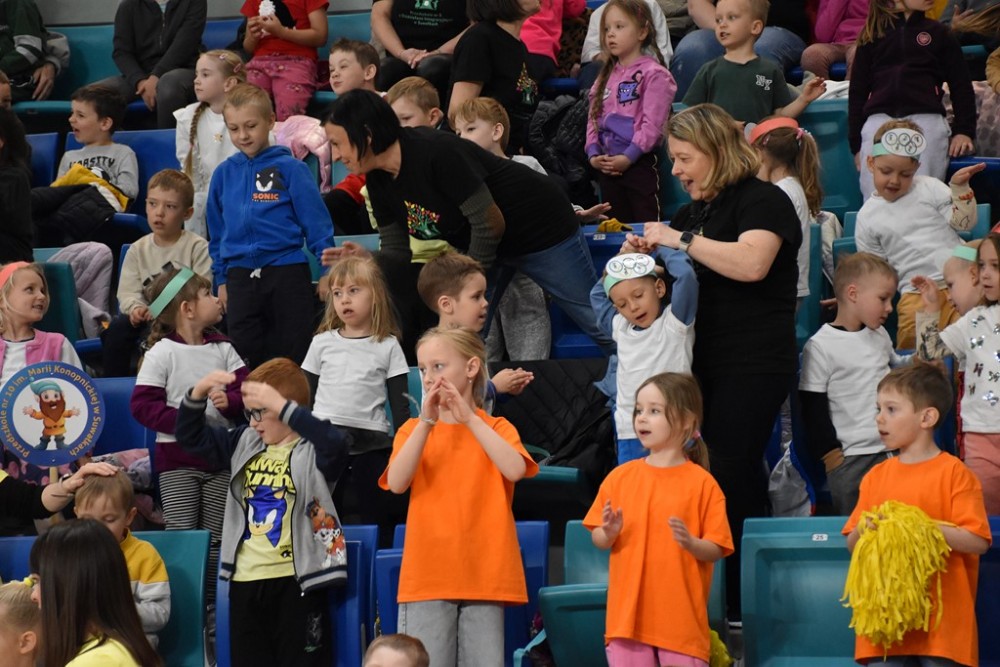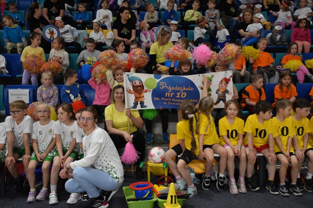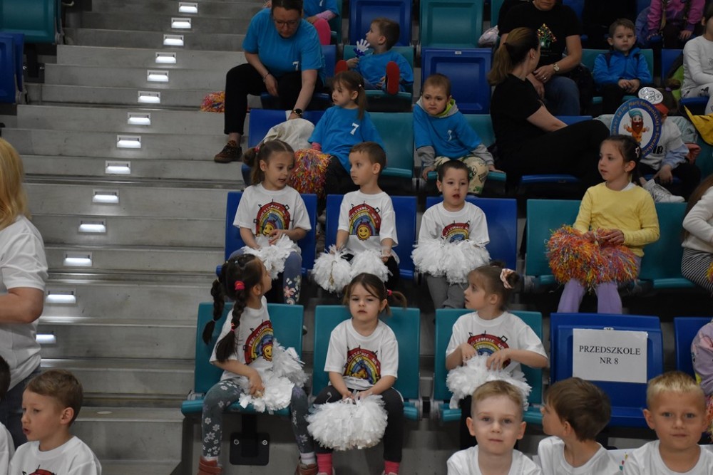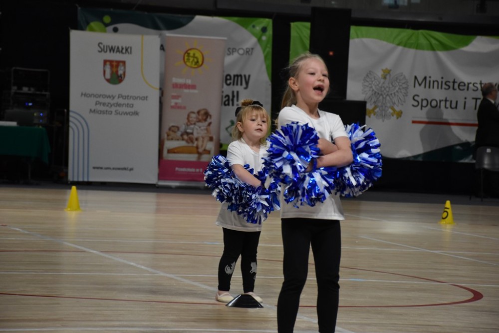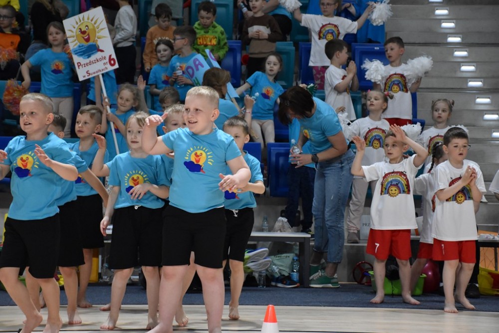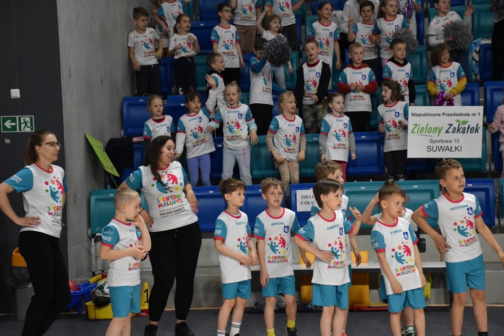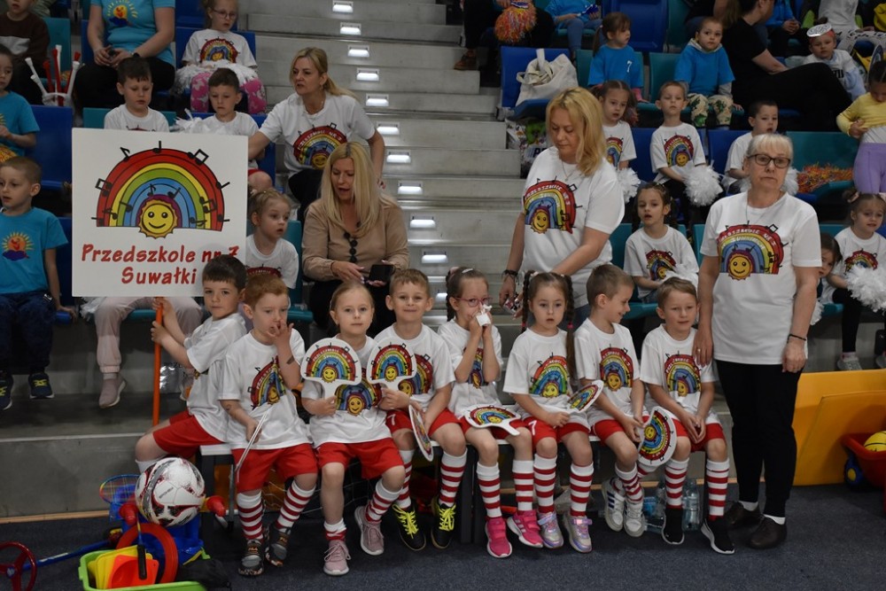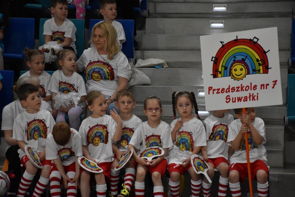 Na caÅ‚ego szÅ‚y podczas wystÄ™pów muzycznych i tanecznych oraz rozgrzewki. Maluchy wszystko traktujÄ… serio i z emocjami, które udzielaÅ‚y siÄ™ nauczycielkom, kibicom, a także dorosÅ‚ym sportowcom i trenerom Åšlepska Malowu oraz Wigier SuwaÅ‚ki, którzy wparli organizatorów z Przedszkola nr 8 w przeprowadzeniu imprezy.