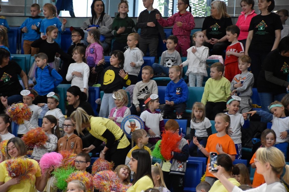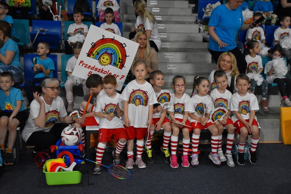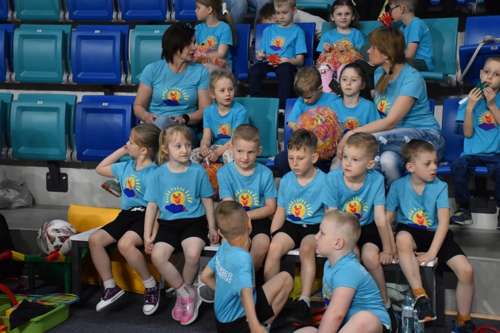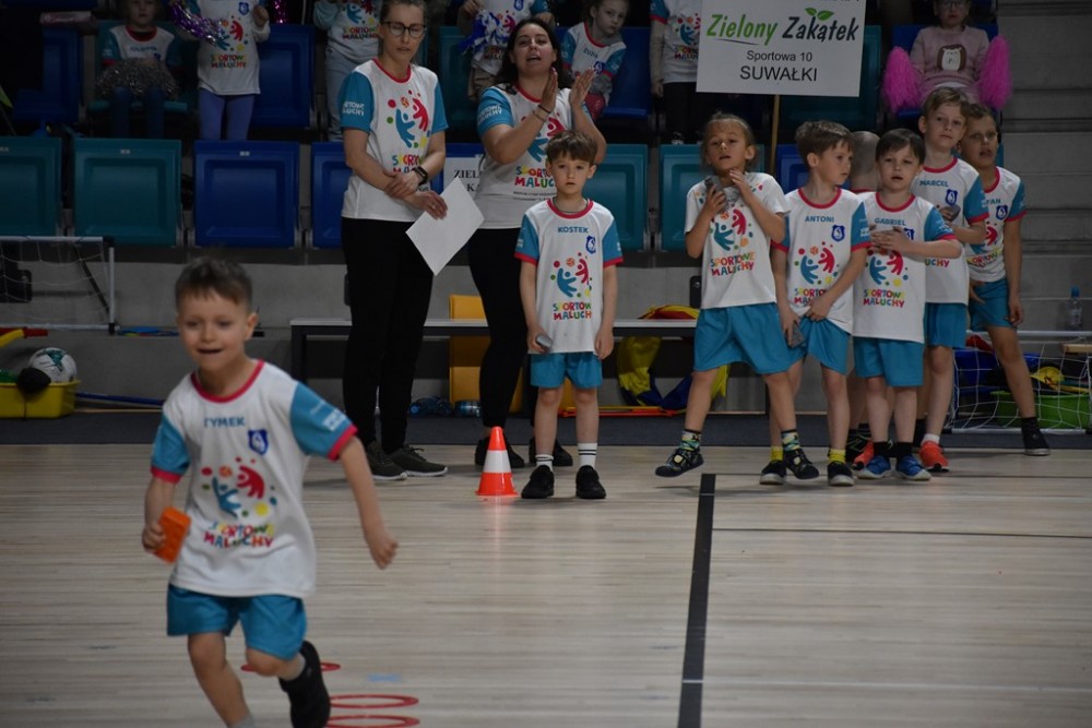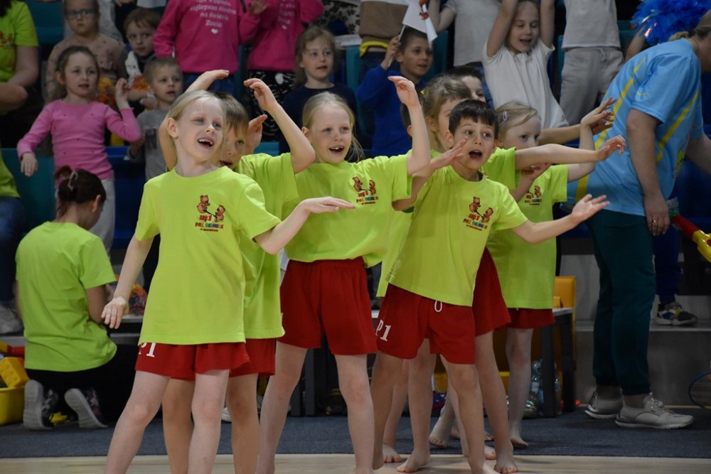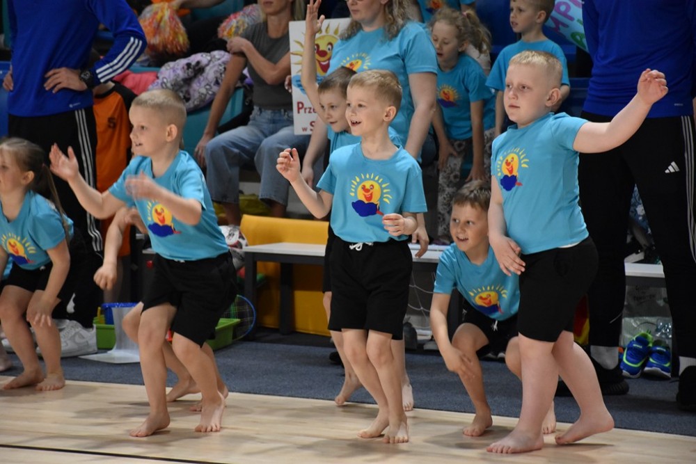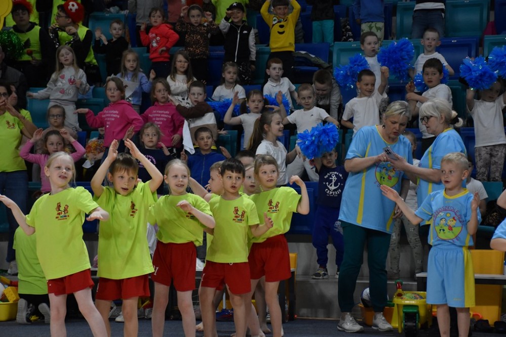 Na caÅ‚ego szÅ‚y podczas wystÄ™pów muzycznych i tanecznych oraz rozgrzewki. Maluchy wszystko traktujÄ… serio i z emocjami, które udzielaÅ‚y siÄ™ nauczycielkom, kibicom, a także dorosÅ‚ym sportowcom i trenerom Åšlepska Malowu oraz Wigier SuwaÅ‚ki, którzy wparli organizatorów z Przedszkola nr 8 w przeprowadzeniu imprezy.