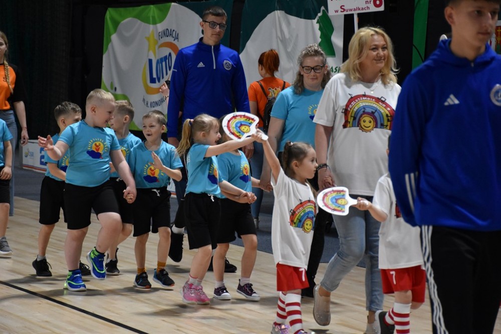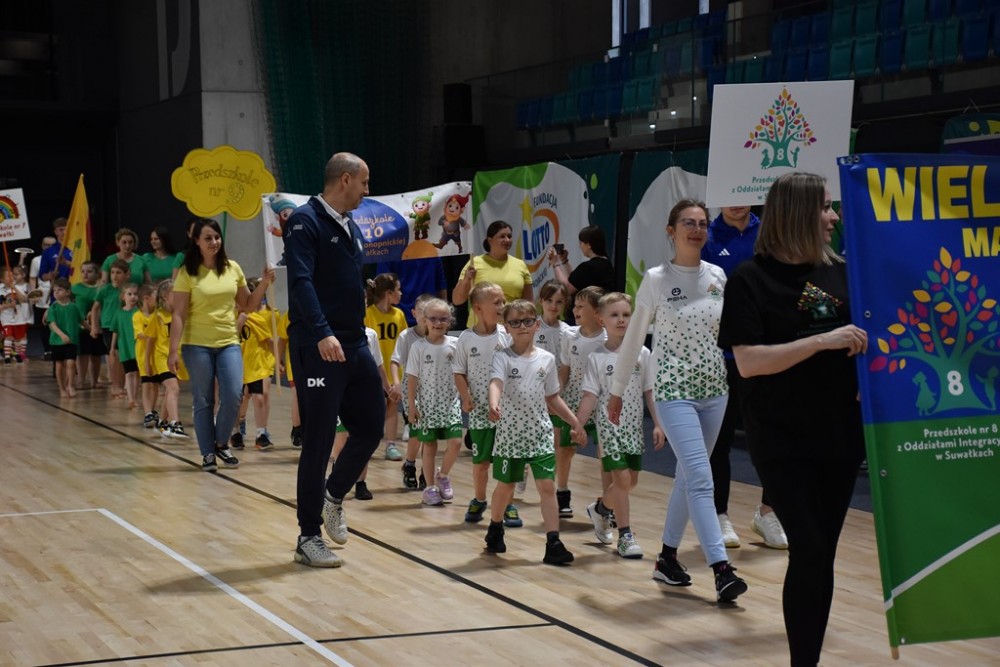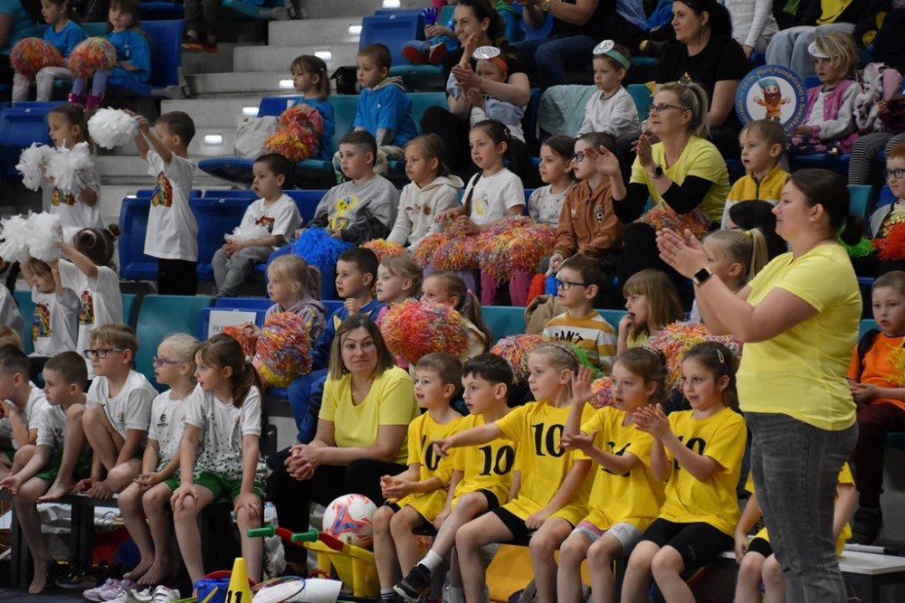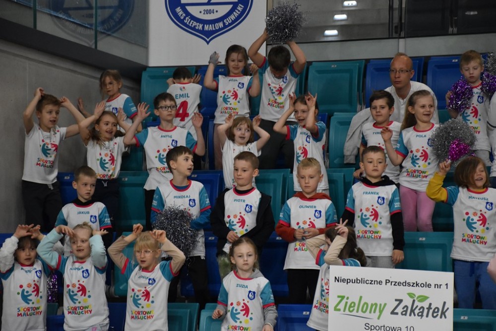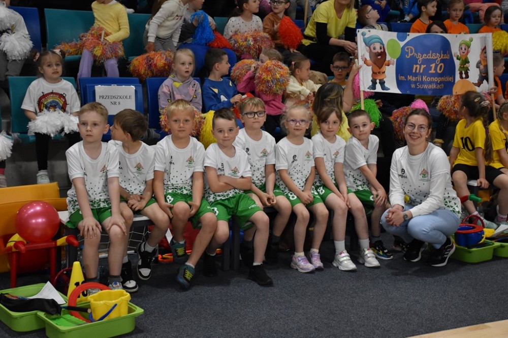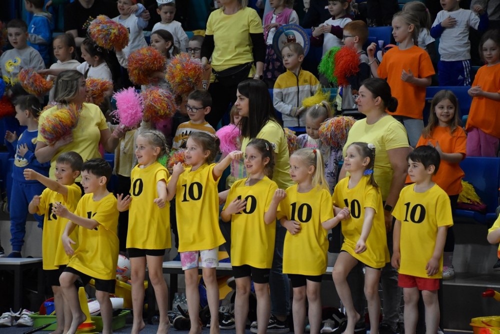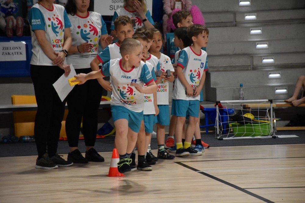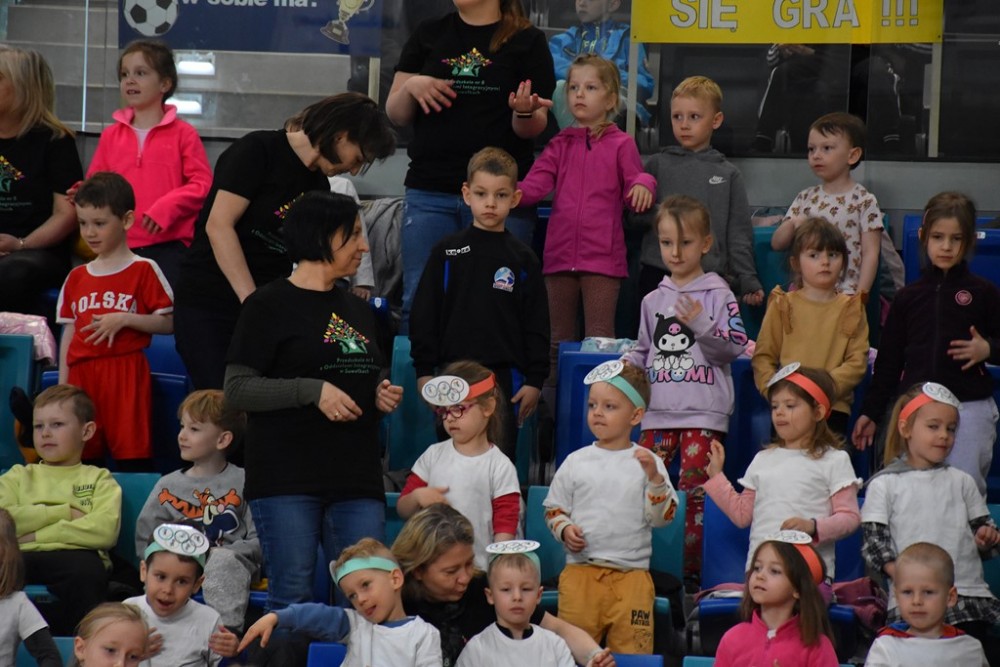 Na caÅ‚ego szÅ‚y podczas wystÄ™pów muzycznych i tanecznych oraz rozgrzewki. Maluchy wszystko traktujÄ… serio i z emocjami, które udzielaÅ‚y siÄ™ nauczycielkom, kibicom, a także dorosÅ‚ym sportowcom i trenerom Åšlepska Malowu oraz Wigier SuwaÅ‚ki, którzy wparli organizatorów z Przedszkola nr 8 w przeprowadzeniu imprezy.