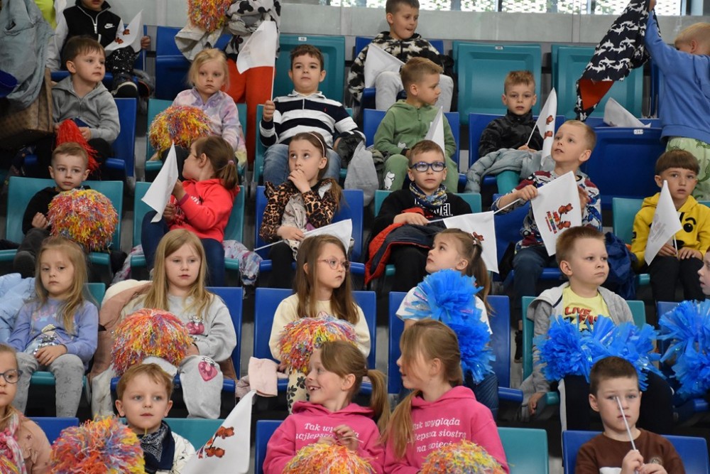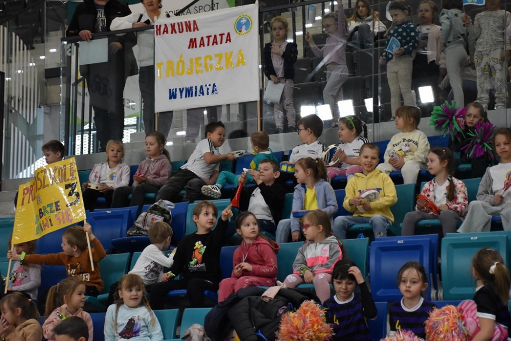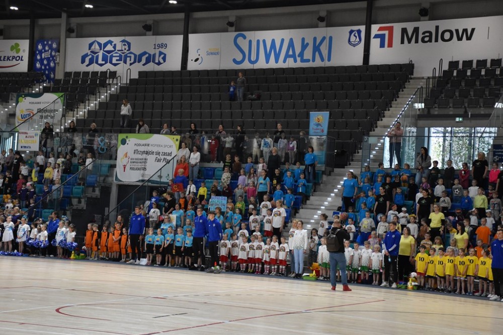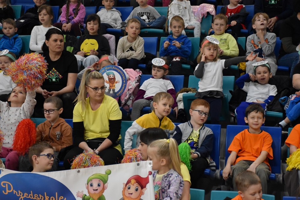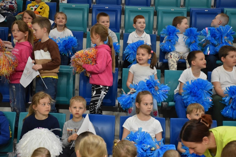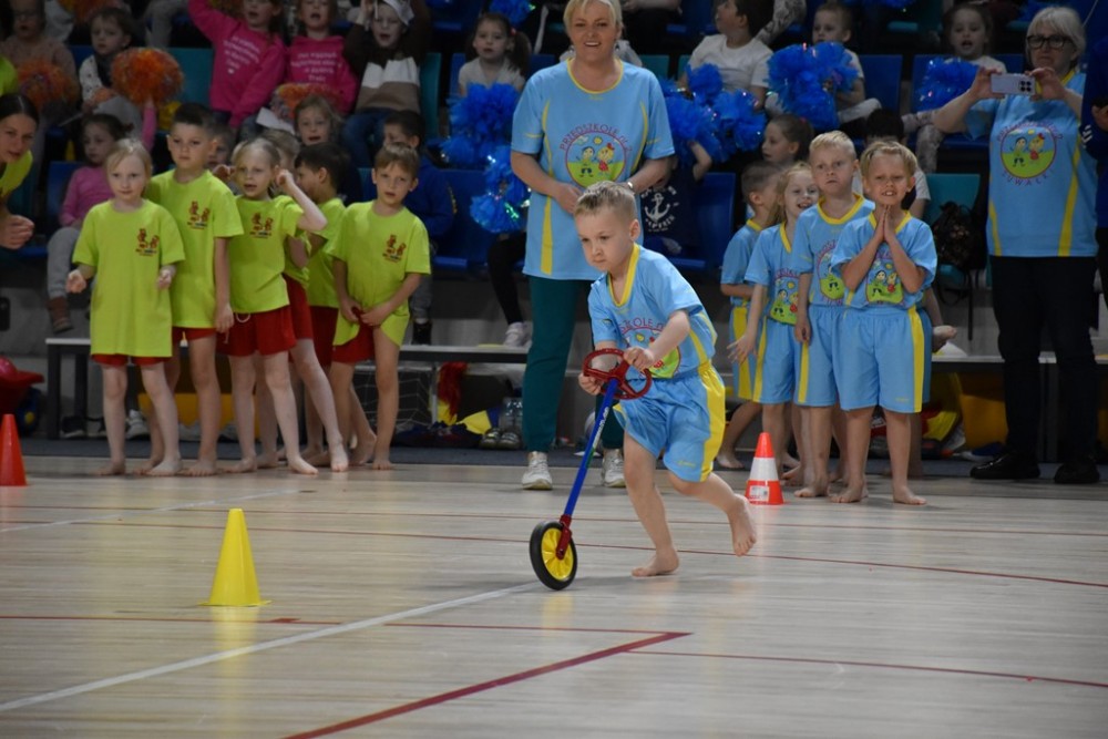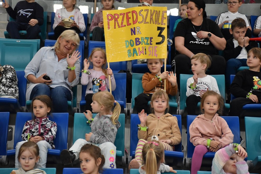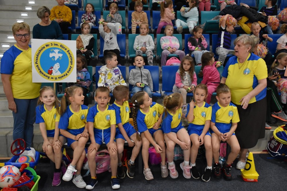 Na caÅ‚ego szÅ‚y podczas wystÄ™pów muzycznych i tanecznych oraz rozgrzewki. Maluchy wszystko traktujÄ… serio i z emocjami, które udzielaÅ‚y siÄ™ nauczycielkom, kibicom, a także dorosÅ‚ym sportowcom i trenerom Åšlepska Malowu oraz Wigier SuwaÅ‚ki, którzy wparli organizatorów z Przedszkola nr 8 w przeprowadzeniu imprezy.