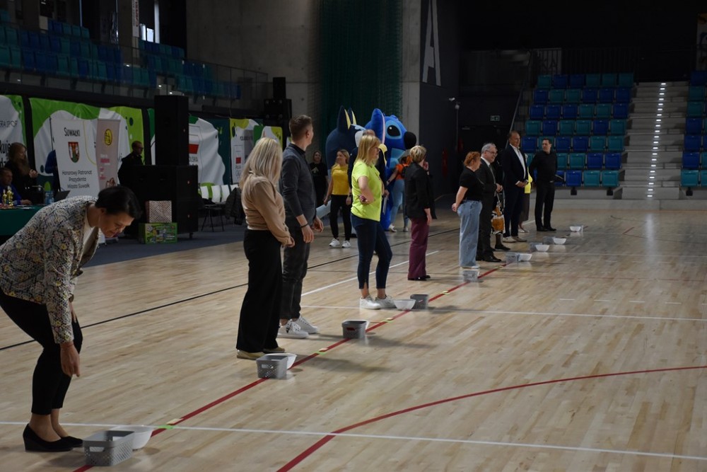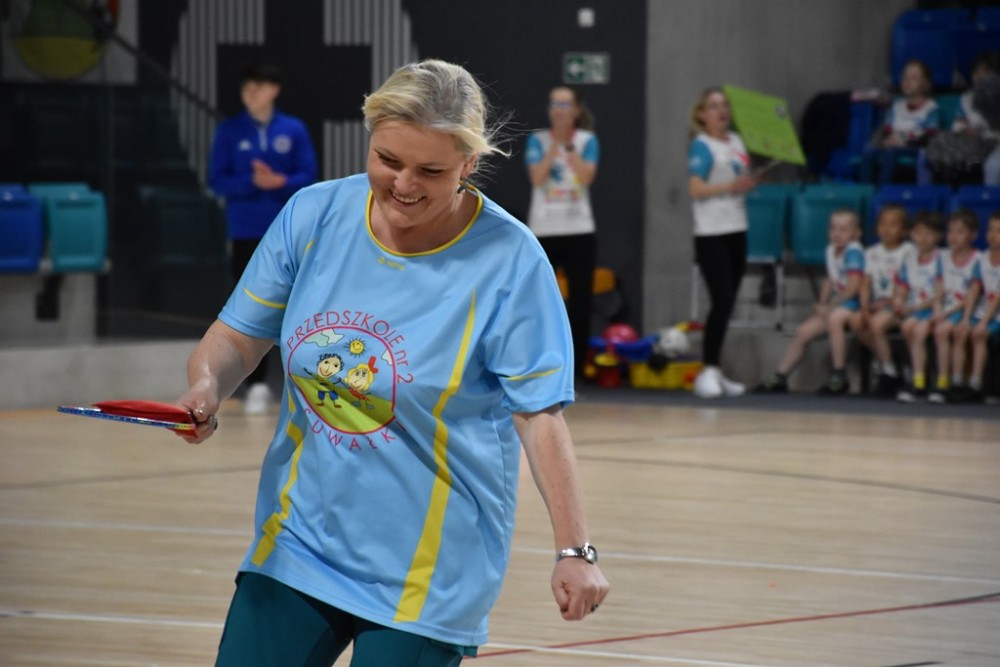 Popis artystyczny daÅ‚y najmÅ‚odsze cheerleaderki Åšlepska Malowu SuwaÅ‚ki, a do aktywnoÅ›ci skutecznie zostali namówieni goÅ›cie, z honorowym patronem imprezy, prezydentem SuwaÅ‚k na czele. Przedstawiciele wÅ‚adz oÅ›wiatowych i samorzÄ…dowych oraz klubów sportowych i dyrektorki przedszkoli rywalizowali w prawidÅ‚owym wieszaniu skarpetek na czas, a nauczycielki w jak najszybszym przeniesieniu lotki na rakietce.