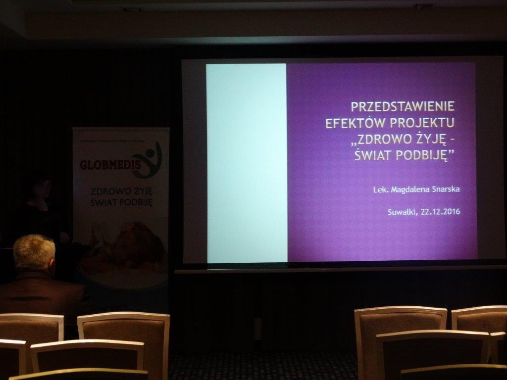W Suwałkach odbyła się konferencja podsumowująca projekt "ZDROWO ŻYJĘ - ŚWIAT PODBIJĘ" realizowany przez Suwalską Fundację Ochrony Zdrowia "Globmedis" w ramach Projektu dofinansowanego ze środków Programu Fundusz Inicjatyw Obywatelskich oraz realizowany przy wsparciu finansowym Województwa Podlaskiego.