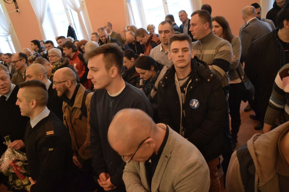 Emocje studzili obecni na sali komendanci policji. Z racji obecności ministra spraw wewnętrznych zjawili się tu bowiem szefowie komend z Białegostoku i Suwałk. Byli też przedstawiciele innych służb mundurowych m.in. strażacy i pogranicznicy. Sam Mariusz Błaszczak po części oficjalnej w pośpiechu opuścił budynek.