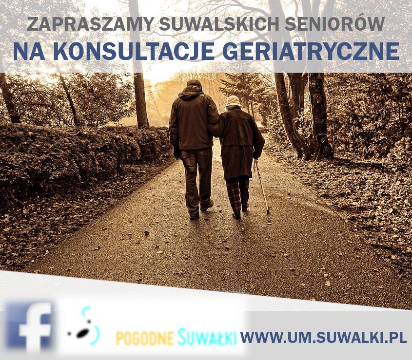 Zgodnie z umową zawartą pomiędzy Miastem Suwałki, a Szpitalem Wojewódzkim im. dr. Ludwika Rydygiera w Suwałkach na realizację zadania z zakresu zdrowia publicznego polegającego na udzielaniu porad geriatrycznych dla mieszkańców Suwałk powyżej 70 roku życia posiadających Suwalską Kartę Mieszkańca informujemy, iż uległ zmianie termin udzielania konsultacji geriatrycznych.