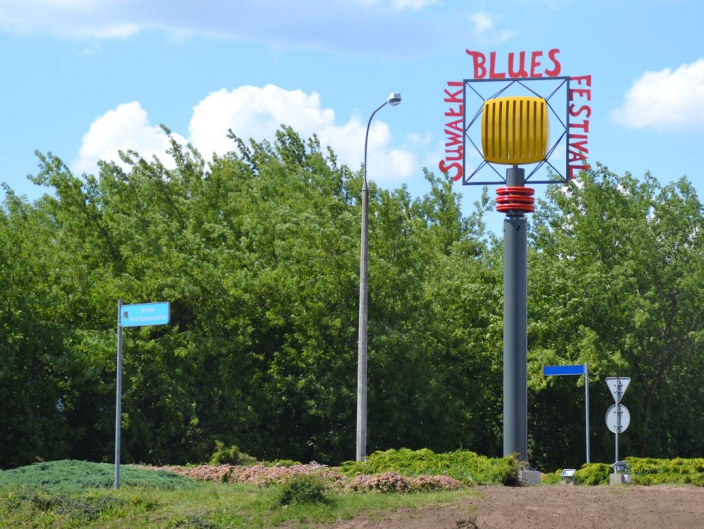 Mikrofon stoi na wlotowym rondzie na skrzyżowaniu Wojska Polskiego i Utraty. To drugi element, który sygnalizować ma turystom, że wjeżdżajÄ… do miasta bluesa. PierwszÄ… jest rdzawa gitara, która stoi obecnie na rondzie na póÅ‚nocnym odcinku ulicy PuÅ‚askiego. Nie wzbudziÅ‚a ona jednak pozytywnych komentarzy suwalczan.