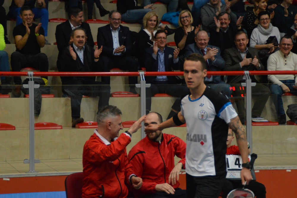 Mecz o złoty medal reprezentacji swojej Akademii z SKB Litpol-Malow Suwałki były mistrz Europy oglądał z krzesła ustawionego z boku. Sam nie mógł zagrać, bo zabraniają tego przepisy ligi francuskiej, w której rozgrywa chyba ostatni swój sezon (z tego samego powodu w Suwałkach nie zobaczyliśmy Adriana Dziółki, najlepszego obecnie polskiego singlisty). Robert Mateusiak zaciskał palce, konsultował uwagi z trenerem ABRM Jackiem Hankiewiczem, ale musial przełknąc gorycz porażki obu swoich singlistów.