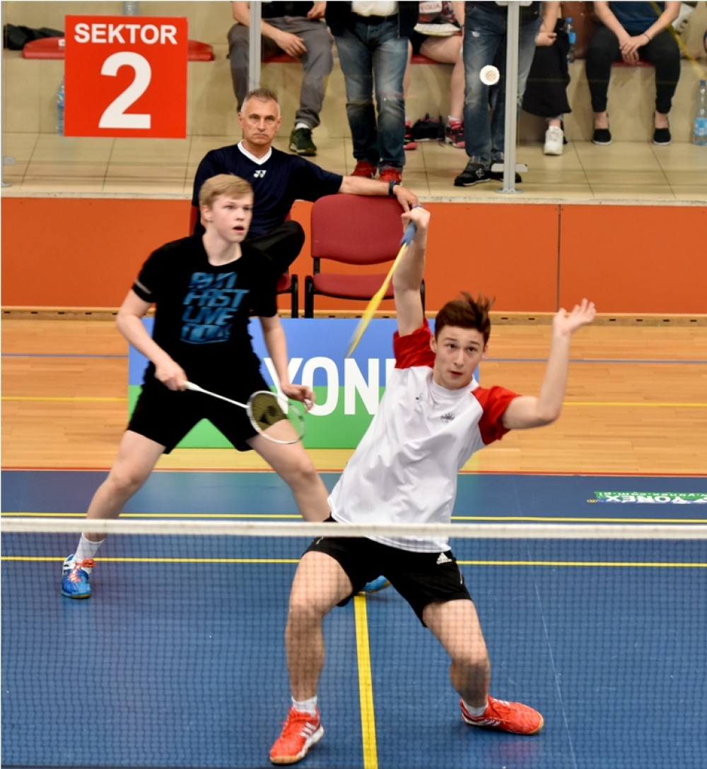 gra podwójna chłopców : Bartosz GAŁĄZKA [1]/Maciej MATUSZ - Szymon STOKFISZ [2]/Wiktor TRECKI 21:13, 20:22, 21:8 (0:33 min.)