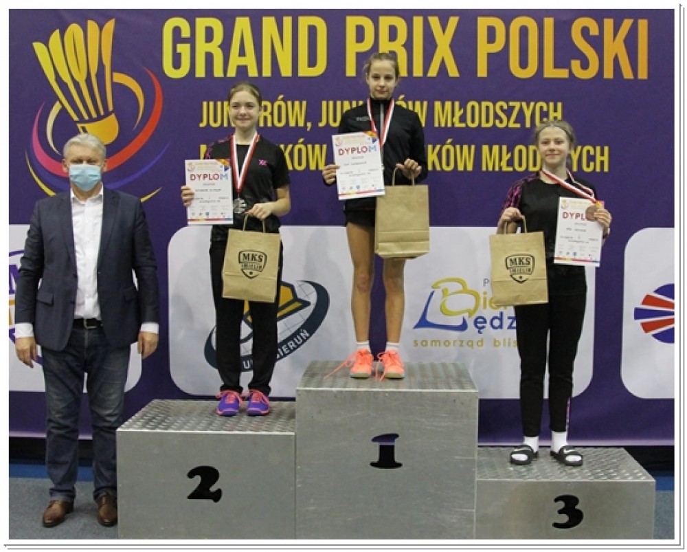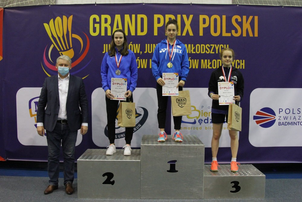 ZÅ‚oty medal Aleksandry Wilczewskiej w grze podwójnej dziewczÄ…t U13, w której wystÄ…piÅ‚a z KajÄ… ZióÅ‚kowskÄ… (UKS Wschodnia 12 Kielce). Ta, mÅ‚oda suwalska badmintonistka, jak można sÄ…dzić po wynikach, pomalutku zapeÅ‚nia póÅ‚kÄ™ medalami i pucharami.