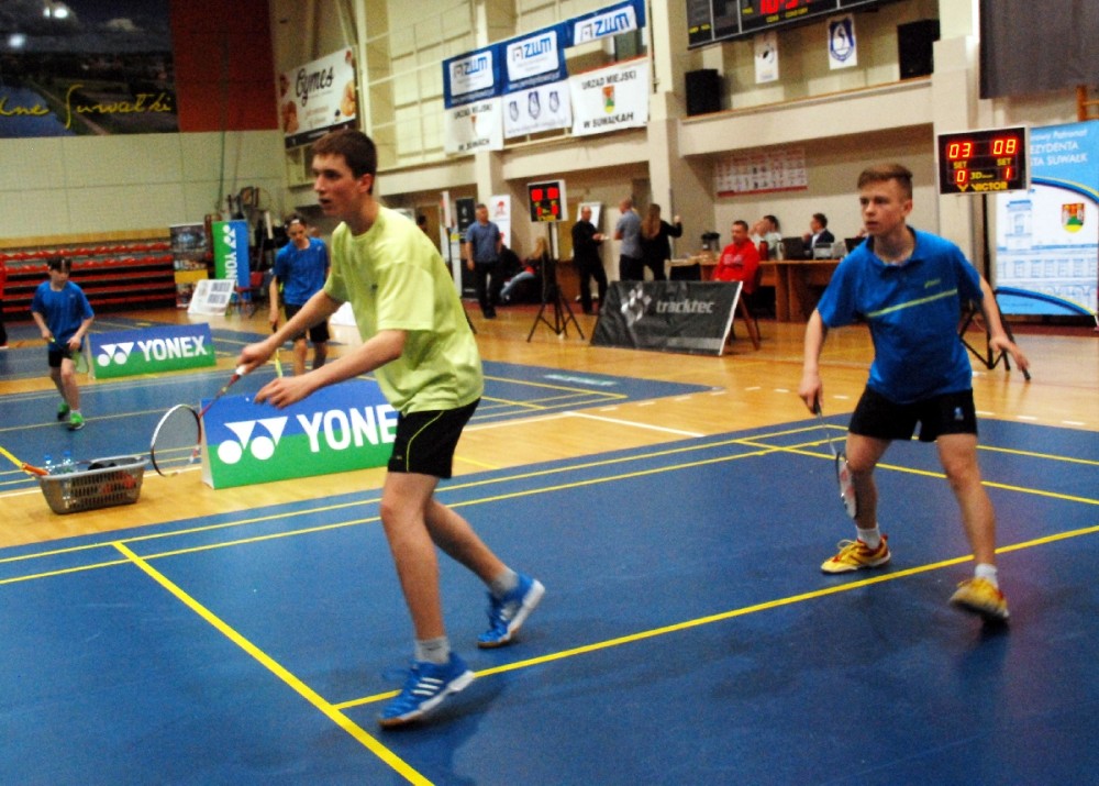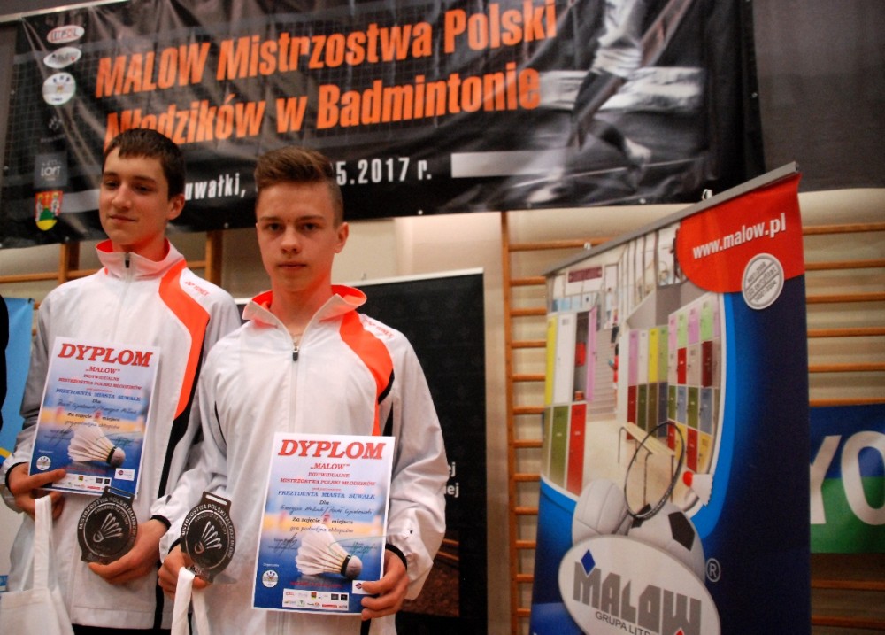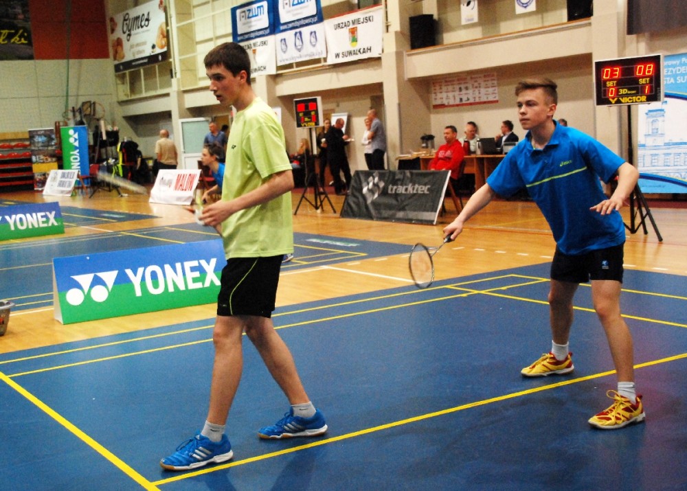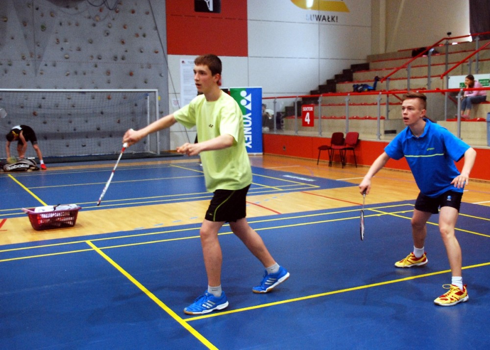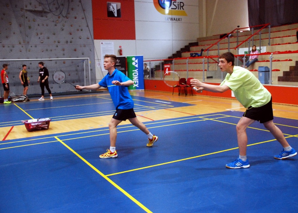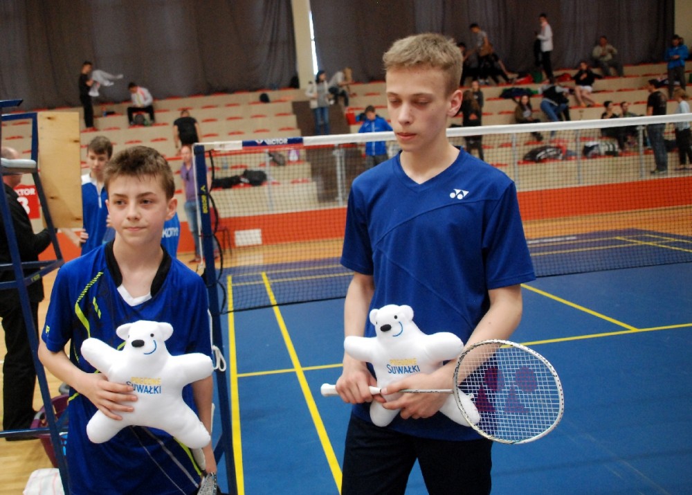 W niedzielnych finałach rozegranych w Suwałkach Indywidualnych Mistrzostw Polski Młodzików w badmintonie zabrakło zawodników gospodarzy czyli SKB Suwałki. Z suwalczan najlepiej zaprezentował się debel Paweł Cipielewski/Grzegorz Hołub (na zdjęciu), który zakończył występy w półfinale i wywalczył brązowe medale.