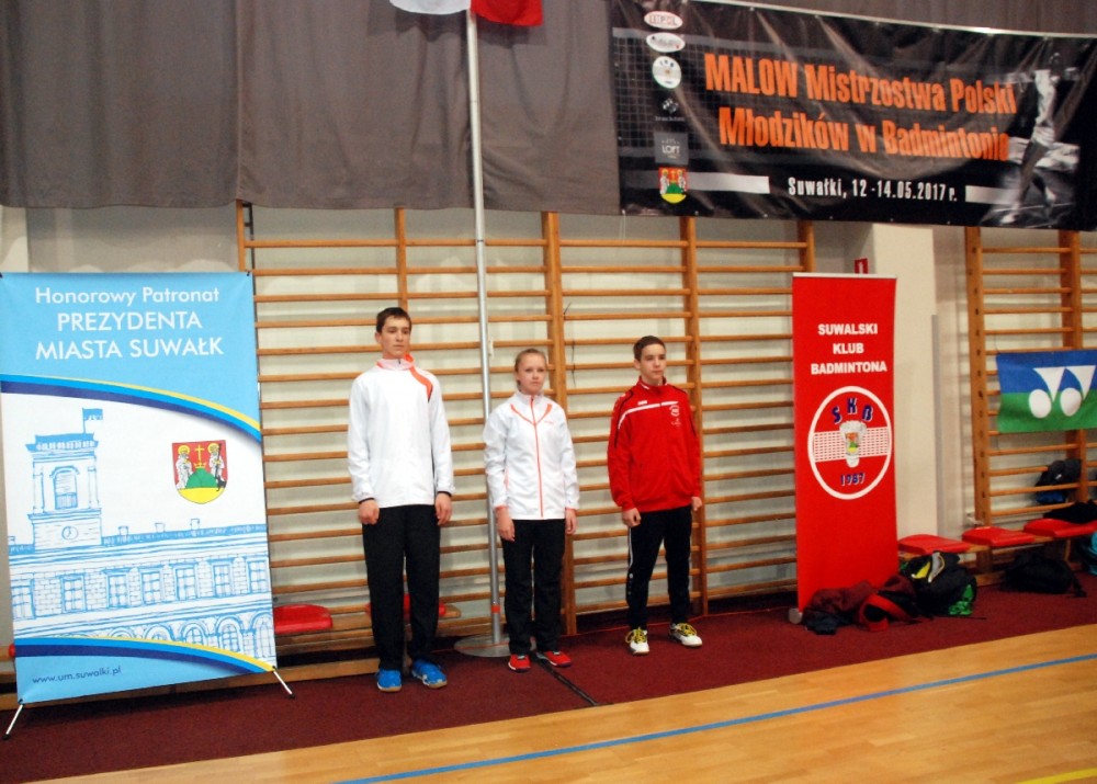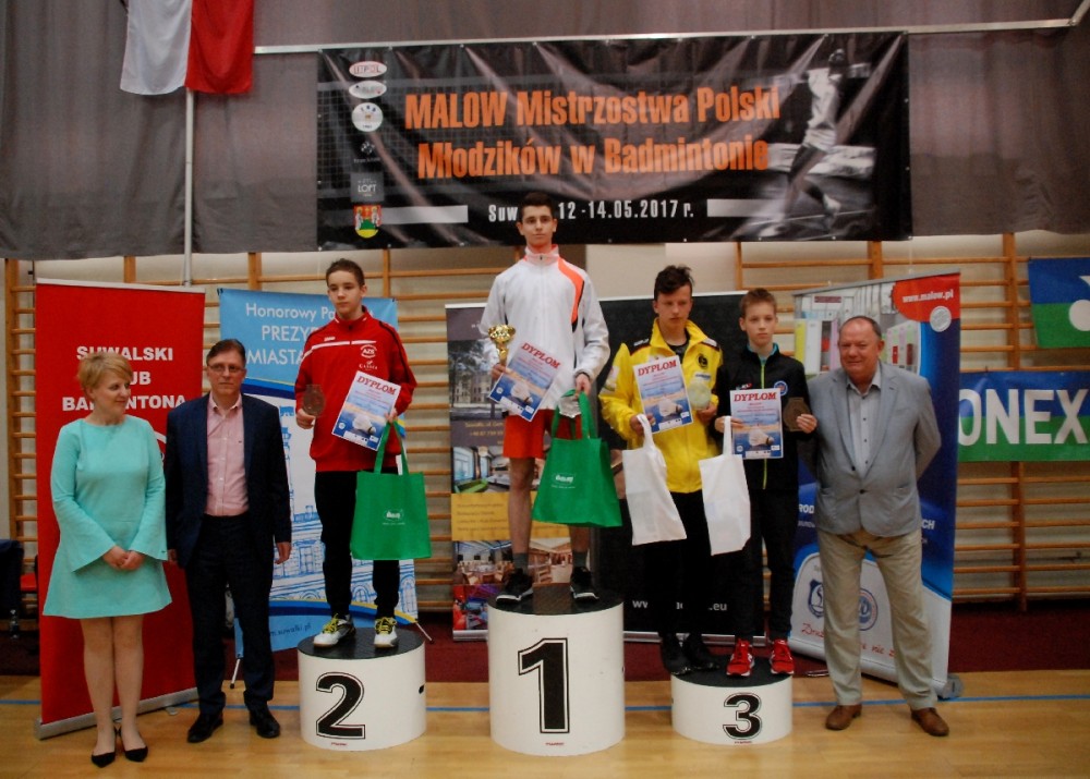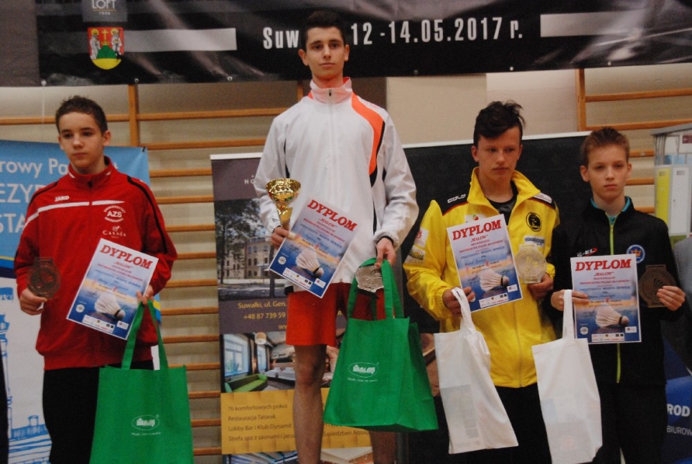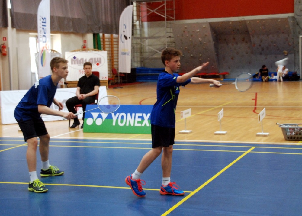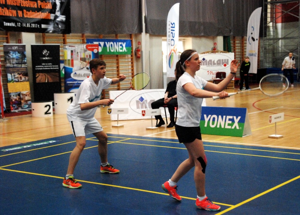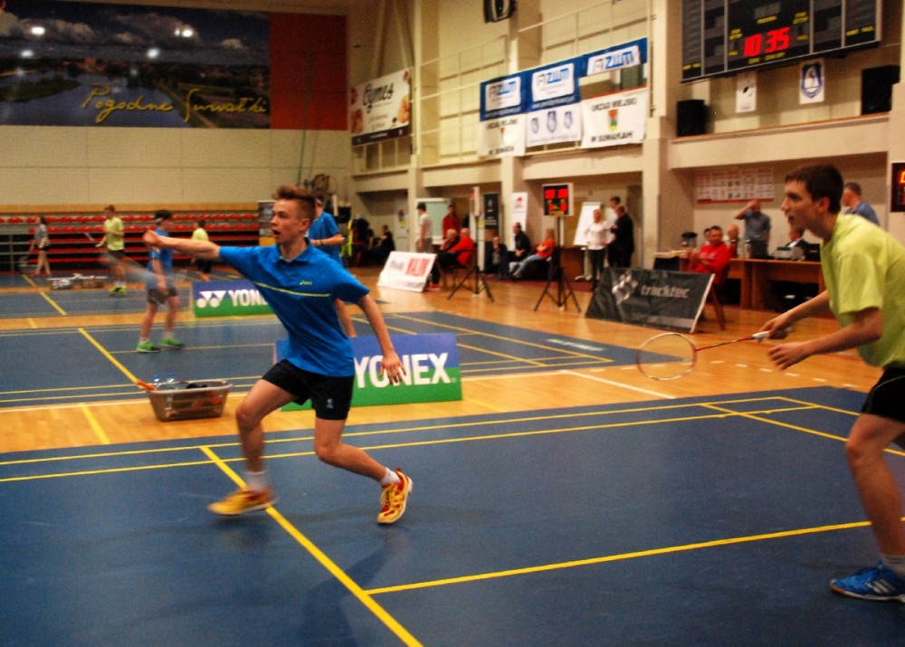 W niedzielnych finałach rozegranych w Suwałkach Indywidualnych Mistrzostw Polski Młodzików w badmintonie zabrakło zawodników gospodarzy czyli SKB Suwałki. Z suwalczan najlepiej zaprezentował się debel Paweł Cipielewski/Grzegorz Hołub (na zdjęciu), który zakończył występy w półfinale i wywalczył brązowe medale.