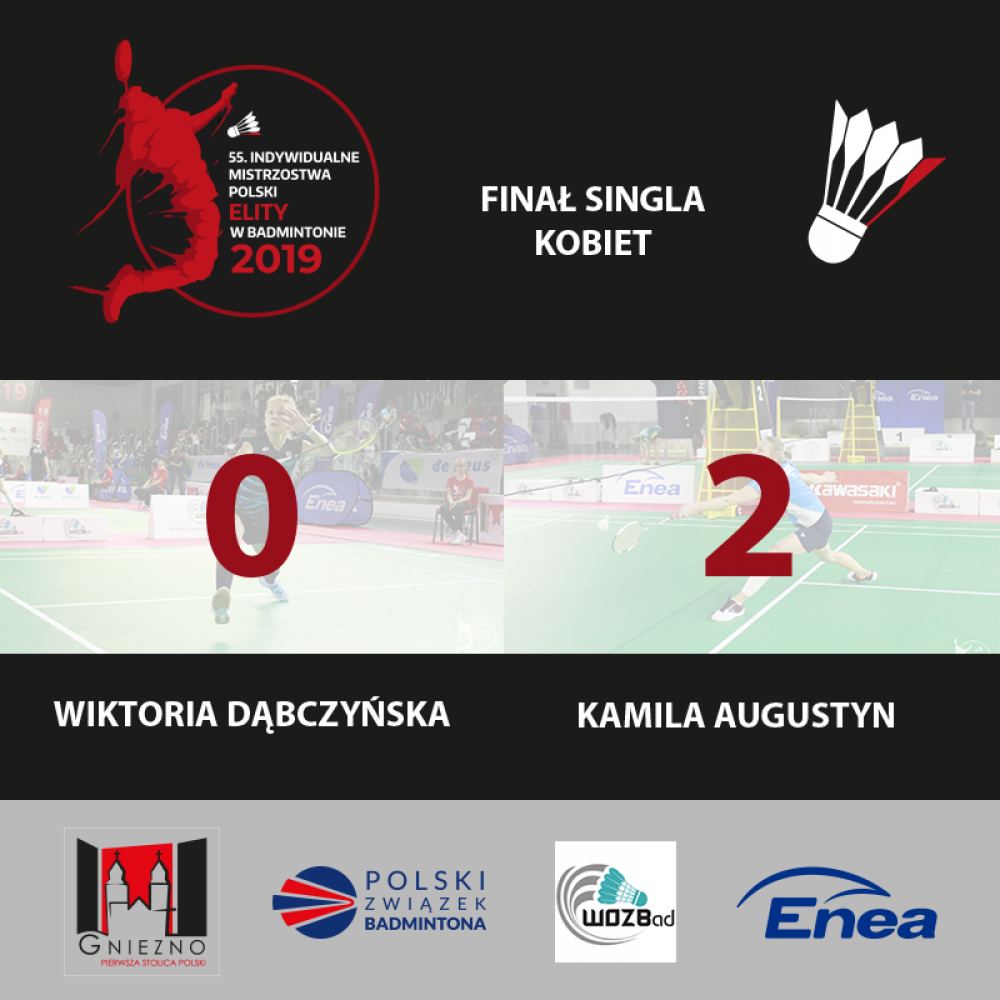 W niedzielę w Gnieźnie jedyny złoty medal dla SKB na 55 Indywidualnych Mistrzostwach Polski Elity w badmintonie wywalczyła w singlu Kamila Augustyn, dla której jest to już 16. (słownie: szesnaste) złoto wywalczone w krajowym championacie w grze pojedynczej kobiet.