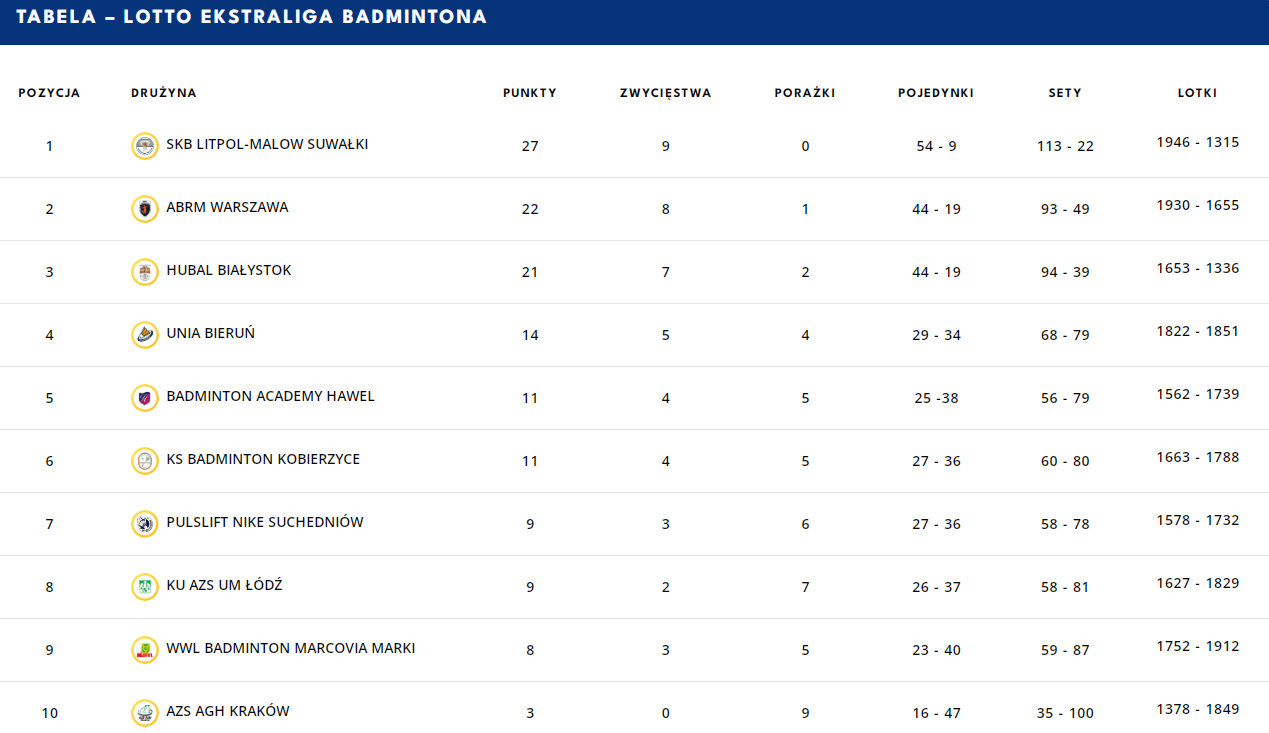 ŹródÅ‚o i fot. Lotto Ekstraliga Badmintona