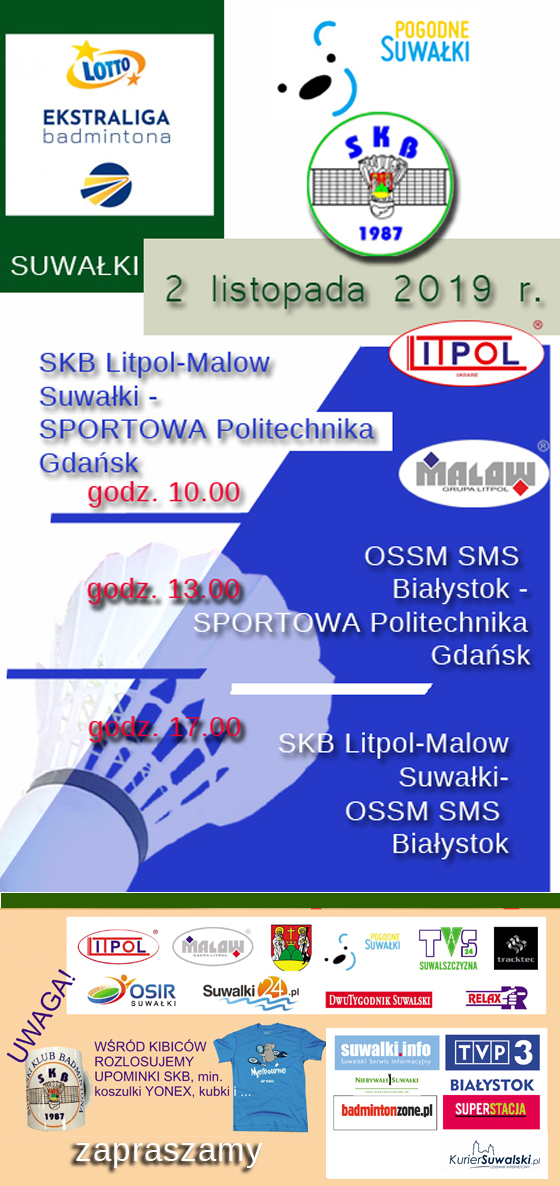 - W tym sezonie zagramy w odmłodzonym składzie, co nie oznacza, że nie chcemy „dorosnąć”, czyli po raz osiemnasty stanąć na najwyższym stopniu podium – deklaruje Jerzy Szleszyński, prezes SKB Litpol-Malow. – Będzie to jednak zadanie bardzo trudne, ale takie stawiamy sobie od wielu lat. W sezonie 2017/18 musieliśmy zadowolić się srebrnymi medalami i tytułem wicemistrza Polski. Teraz zagramy w składzie: Kamila Augustyn, Monika Bieńkowska, Karolina Szubert, Anastazja Chomicz, Uliana Wolska, Michał Łogosz, Łukasz Moreń, Mateusz Świerczyński, Michał Sobolewski, Przemysław Szydłowski, Emil Holst (Dania), trenerem jest Jerzy Dołhan. Jak widać w porównaniu do poprzedniego sezonu, w naszym składzie brakuje Kierana Merrileesa, Scotta Evansa, Febby Annguni i Mette Poulsen. Nowe twarze to wychowanek Technika Głubczyce Przemek Szydłowski oraz dwie młode, trenujące w Suwałkach Białorusinki: Anastazja Chomicz i Uliana Wolska. Faworytami w zaczynającym się sezonie są zespoły obrońcy mistrzowskiego tytułu Akademii Badmintona Roberta Mateusiaka z Warszawy i Hubala Białystok, ale mocną ekipę ma też drugi białostocki zespół OSSM-SMS, z którym zagramy już w pierwszej rundzie.