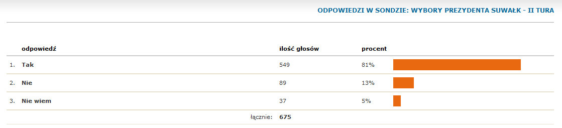 Frekwencja w wyborach samorzÄ…dowych w SuwaÅ‚kach, zresztÄ… jak w caÅ‚ym kraju, nie powala na kolana. Do urn poszÅ‚a mniej niż poÅ‚owa uprawnionych. Zawirowania zwiÄ…zane z ogÅ‚aszaniem oficjalnych wyników i podważaniem ich wiarygodnoÅ›ci, informacje o niespotykanej dotÄ…d liczbie nieważnych gÅ‚osów mogÄ… znacznie osÅ‚abić zainteresowanie udziaÅ‚em w drugiej turze, zaplanowanej na 30 listopada.