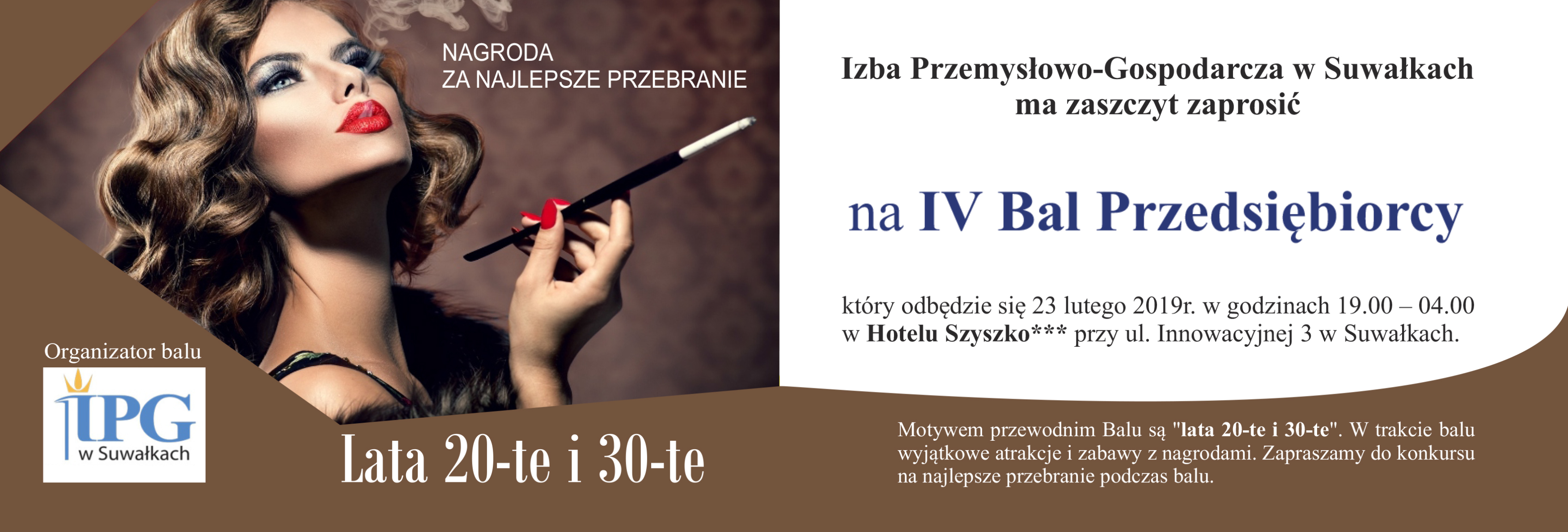 Kto się pospieszy, ten jeszcze skorzysta z zaproszenia Izby Przemysłowo-Gospodarczej w Suwałkach na IV Bal Przedsiębiorcy, który rozpocznie się w tę sobotę, 23 lutego o 19.00 w Hotelu Szyszko.