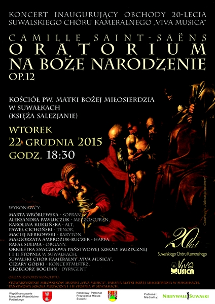 Podczas koncertu zabrzmi "Oratorium na Boże Narodzenie" francuskiego kompozytora Camila Saint Saensa. Wykonawcami koncertu będą: Marta Wróblewska - sopran, Aleksandra Pawluczuk - mazzosopran, Karolina Kuklińska - alt, Paweł Cichoński - tenor, Maciej Nerkowski - baryton, Małgorzata Ambrożuk - Buczek - harfa, Rafał Sulima - organy, Orkiestra Smyczkowa Państwowej Szkoły Muzycznej I i II stopnia w Suwałkach, Suwalski Chór Kameralny "Viva Musica", Cazary Gójski - koncertmistrz, Grzegorz Bogdan - dyrygent.