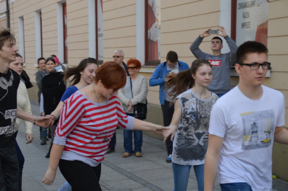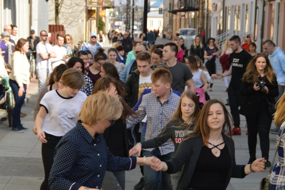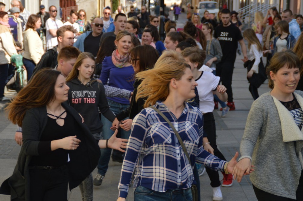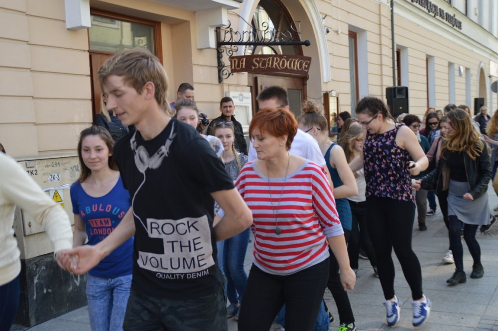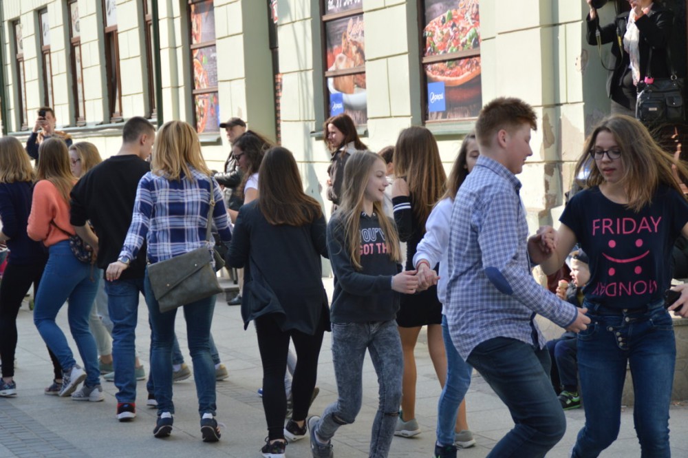 Blisko 100 osób w różnym wieku setnie zabawiło się w centrum miasta. W sobotę od godz. 15 przez kilkanaście minut tańczyło belgijkę, przebój ostatnich studniówek.